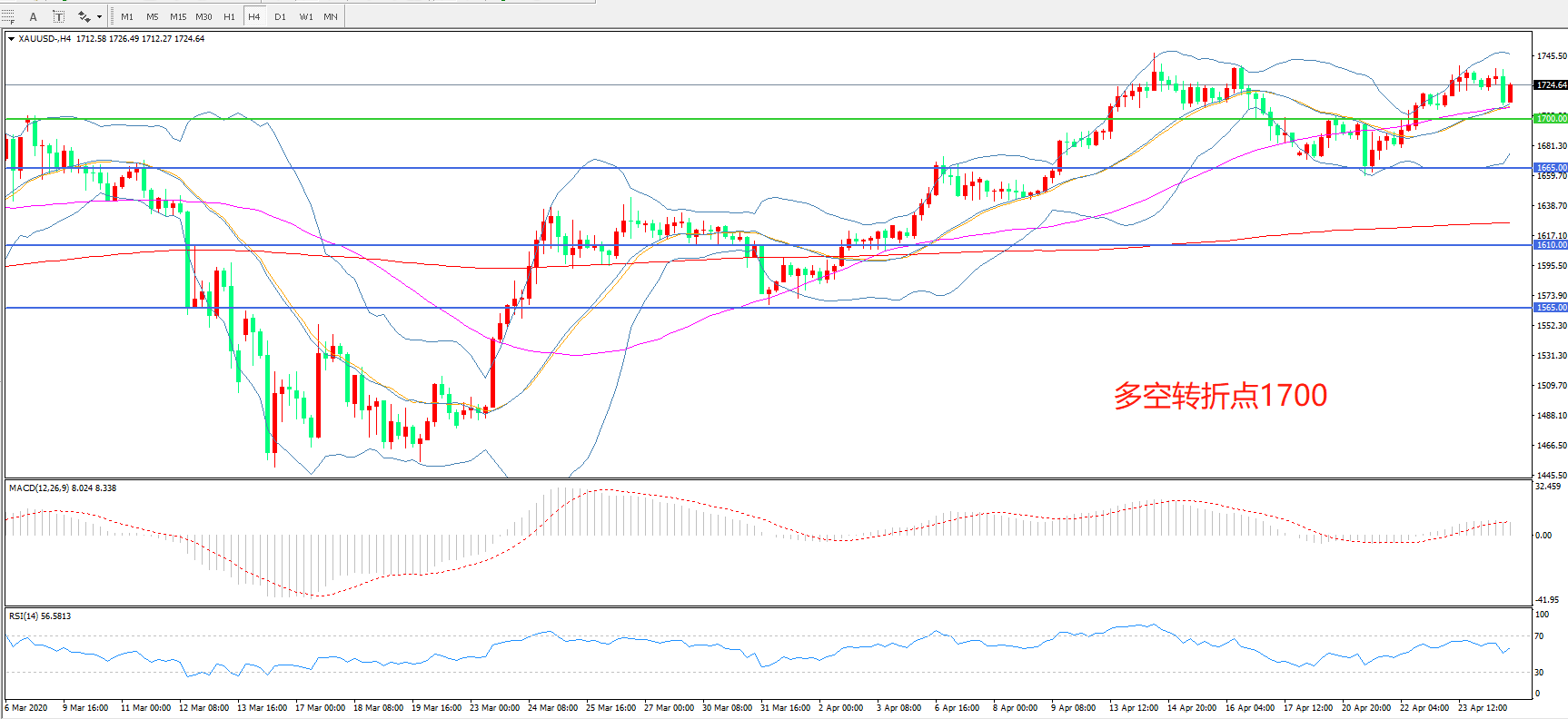 本周市场将迎来三大利率决议,日本央行、美联储和欧洲央行可能会进一步扩大宽松力度,同时美欧还将公布一季度GDP数据,若经济数据继续恶化,由此引发的避险情绪有望再次为金价提供支撑。