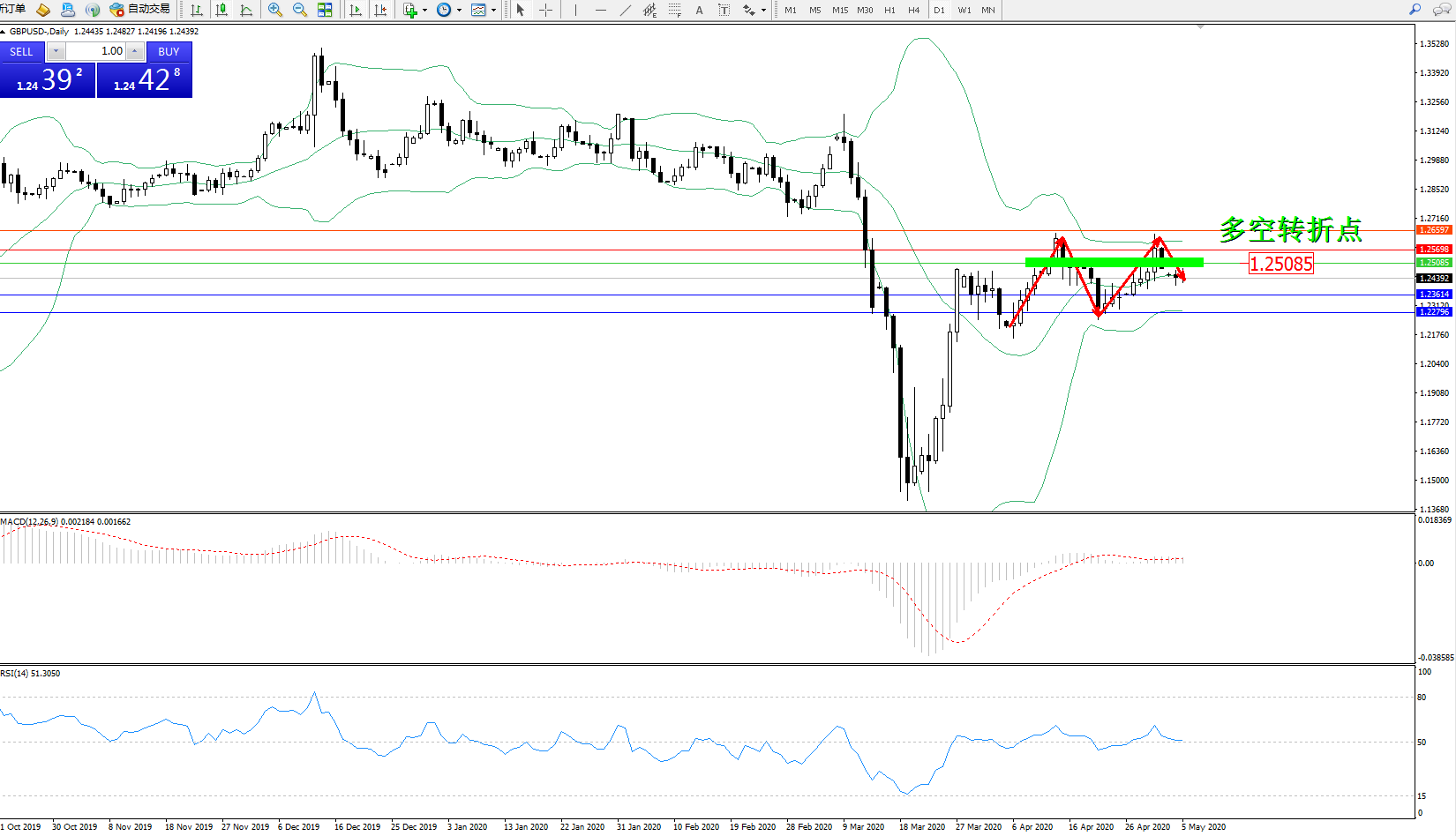 交易策略:1.25085下方看跌,目标1.23614、1.22796