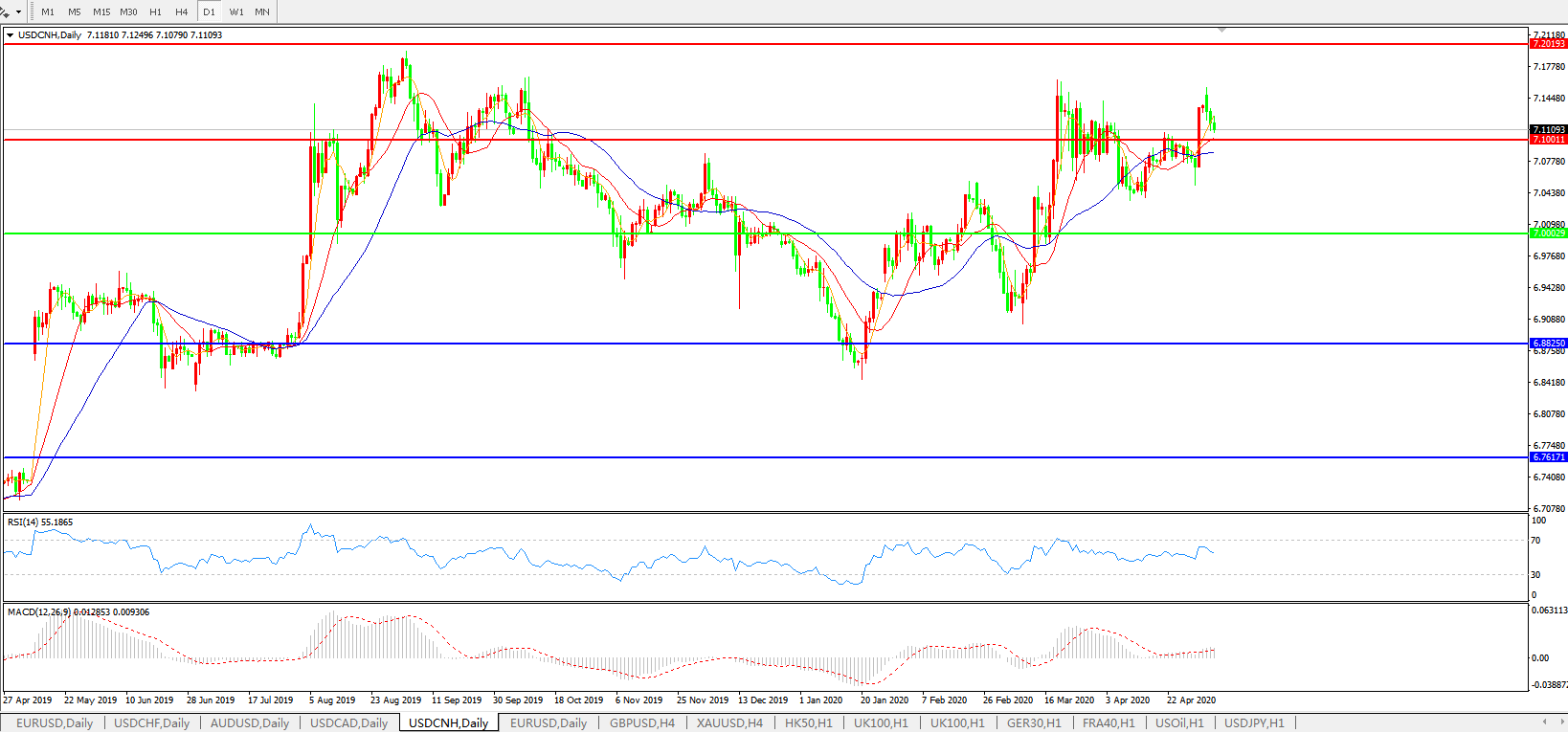 技术面简析:日图均线延续多头排列,汇价大幅拉升后持续回落整理,MACD小幅走升且量能开始放量,RSI冲高回落,预计短期汇价或将进一步上行,关注7.1关口的争夺。