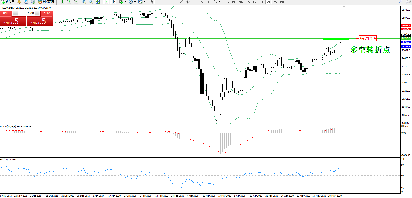 道琼斯指数6月5日(周五)收盘上涨829.20点,涨幅3.15%,报27110.98点。美股三大指数收盘大涨、国债下跌,美国5月就业市场意外改善,但美元本周连续第三周下滑,因对美国经济的不确定性限制了涨幅。风险较高的货币随全球股市飙升而上涨,科技股权重高的纳斯达克综合指数跑输大盘,但盘中仍创纪录。航空、汽车和银行板块飙升,预示着投资者正在从居家时代的受益者转向经济正常化的受益者。尽管按历史标准衡量,13.3%的失业率仍然高得惊人,但随着投资者押注全球经济在大量刺激政策之下将会复苏,市场正掀起一股热情。
