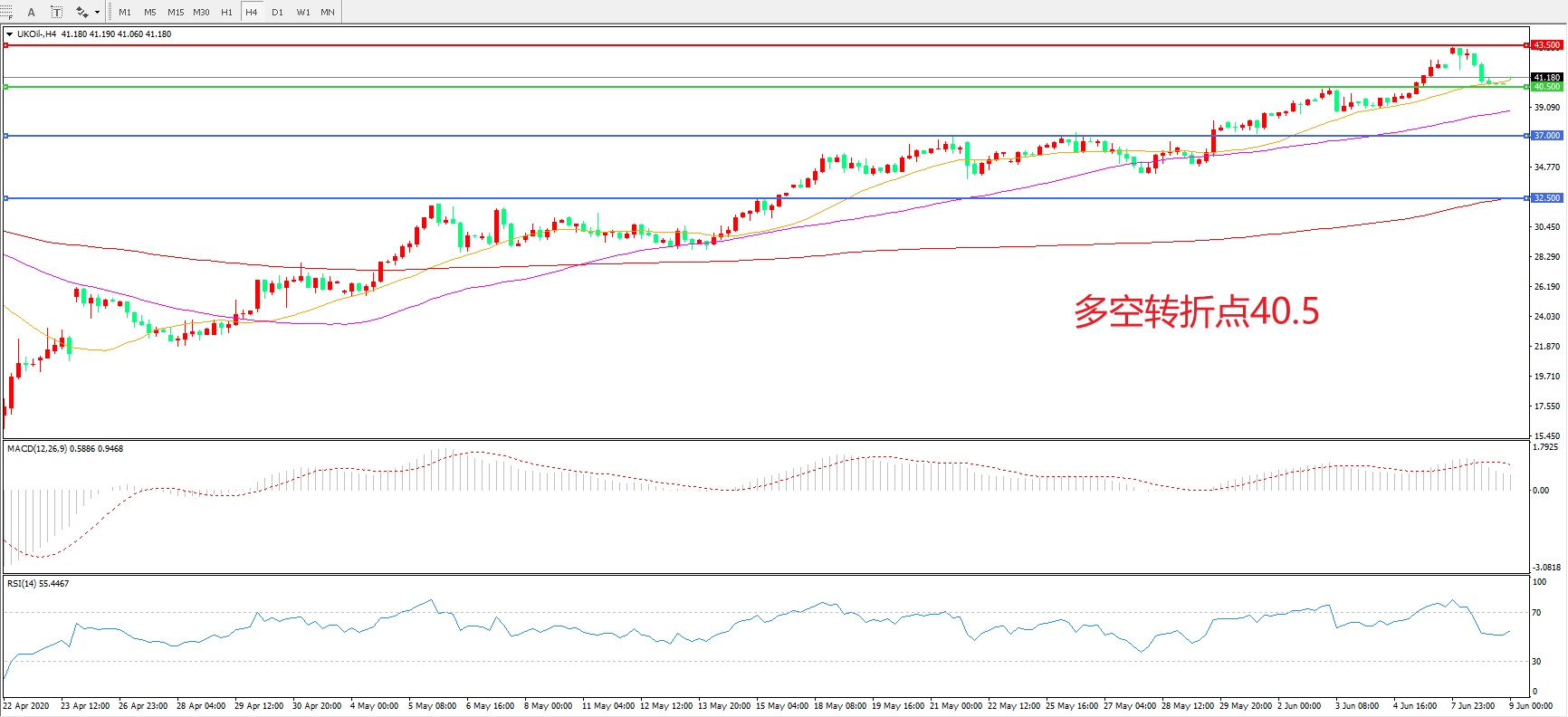 周一(6月8日),由于沙特在OPEC+减产协议基础上额外实施的自愿减产结束,油价小幅回调,布伦特原油一度触及每桶43美元的高点后震荡下行,收报38.58美元/桶。从最近的事件发展和价格走向上来看,沙特成为新一届最佳交易员实至名归,未来原油市场有可能会变成由沙特主导的政策市。