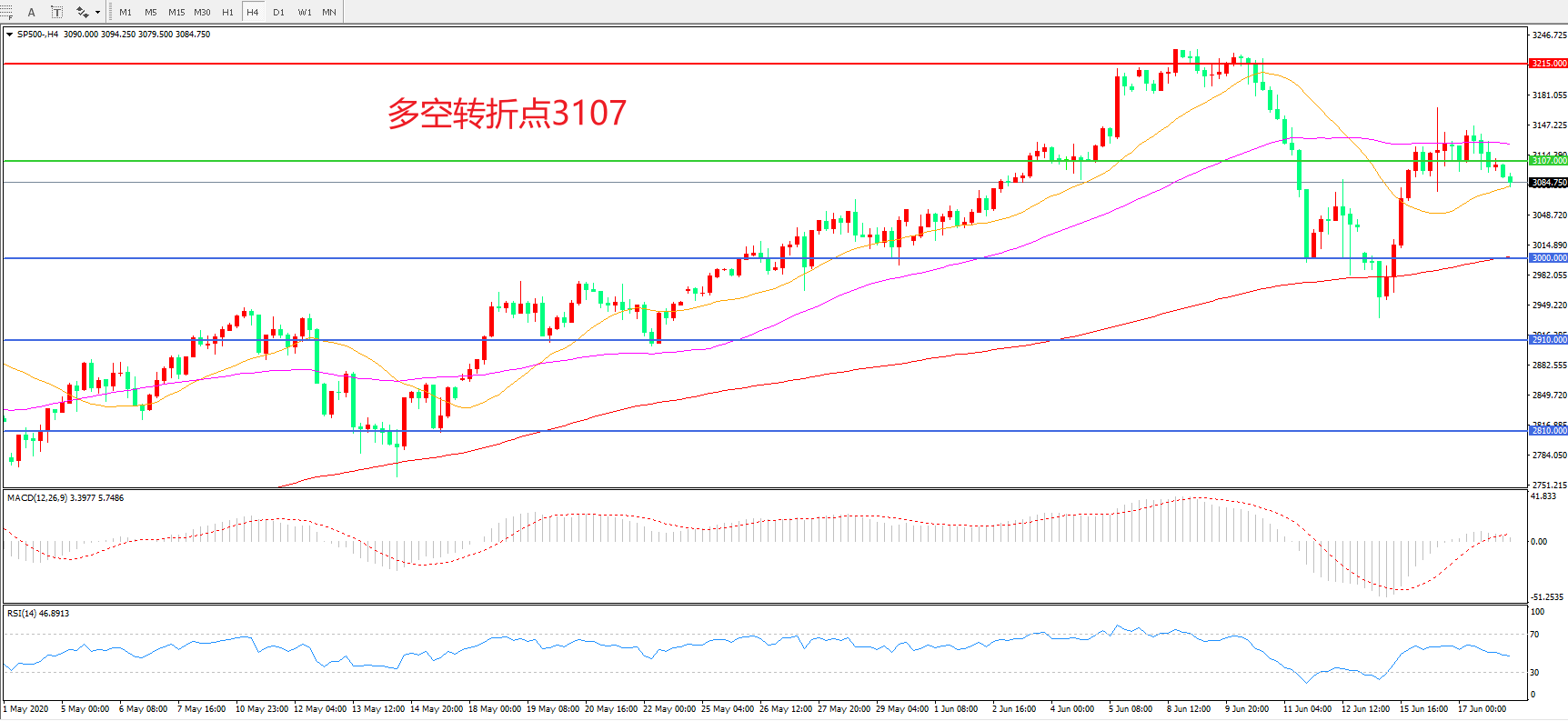 交易策略:在3107.00之下看跌,目标3000.00 2910.00