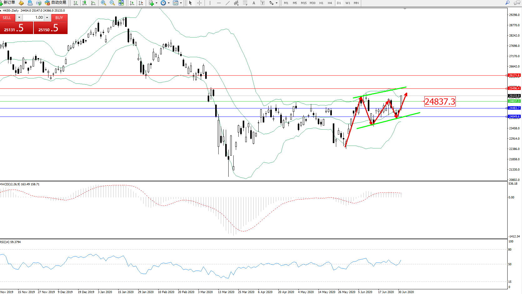 香港恒生指数7月2日(周四)收盘上涨697.0点,涨幅2.85%,报25124.19点;港股三大指数呈高开高走行情,尾盘恒指涨幅扩大至近3%,红筹指数更是暴涨6.36%报3995点。南下资金大幅流入66.09亿港元,大市成交额放大至1759.9亿港元。中资券商股、内房股全线爆发力促大市走高,中芯国际大涨超17%再创新高,市值逼近1800亿港元。蓝筹权重股集体上扬,腾讯、港交所续创新高,分别大涨4%和6%。 恒指6月的止跌给7月的行情带来了积极信号,对于7月行情,市场可以积极看好。香港本土事件方面,石头落地,警报解除。再来看国际关系,临近美国总统大选,连拜登都拿来说事,但要清楚一点,就是为了选举的需要,打嘴炮和实际操作是两回事。所以也没必要入戏太深。
