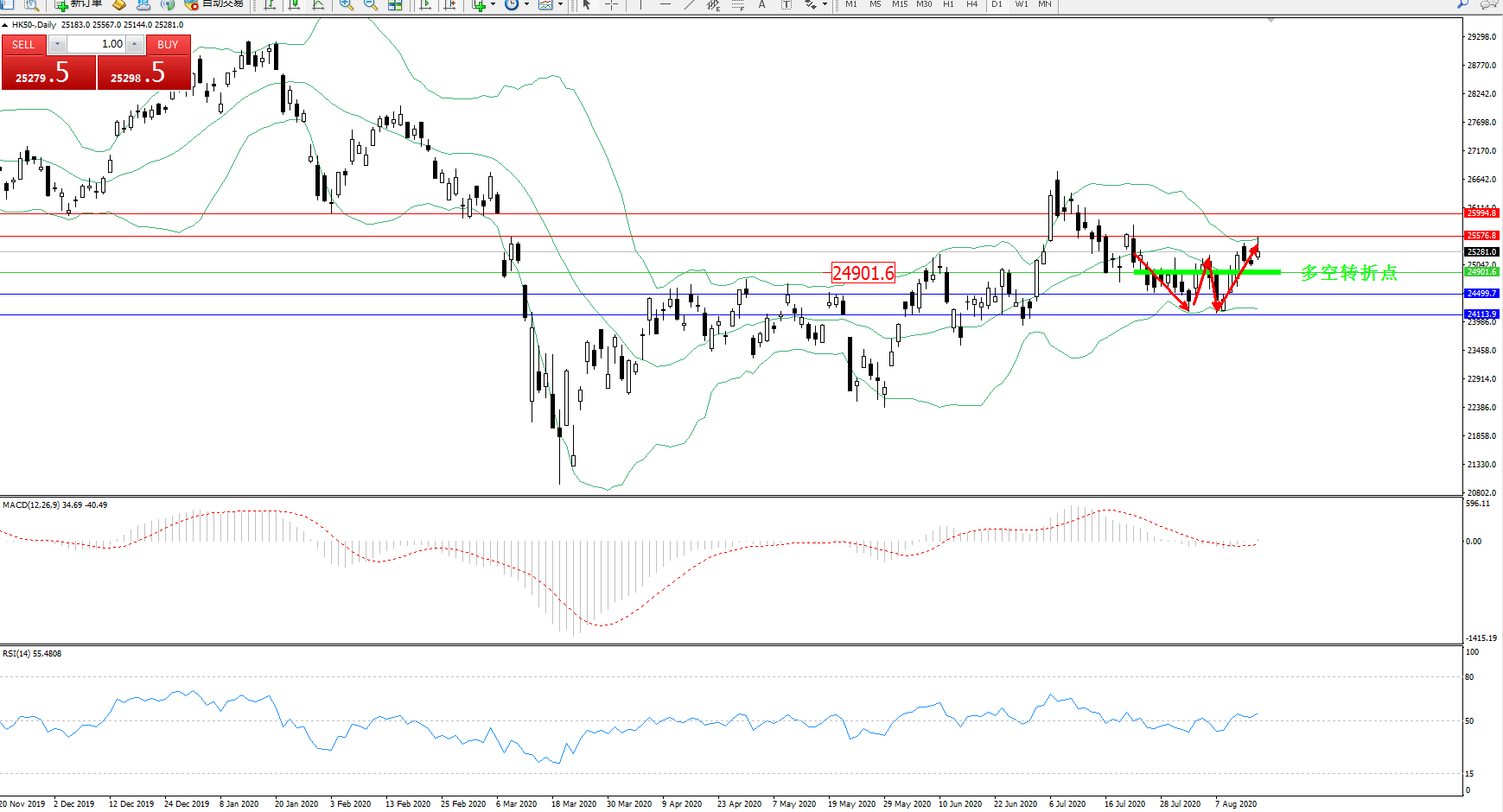 香港恒生指数8月17日(周一)收盘上涨164.33点,涨幅0.65%,报25347.34点;港股三大指数收涨,恒指盘中一度升至1.6%,午后回落明显,盘面上,中资券商股领涨,招商证券大涨逾13%,光大证券升超7%;现货黄金反弹明显,黄金股集体走强;今日南下资金净流入39.24亿港元,大市成交额为1287亿港元。恒生指数有限公司宣布第二季度检讨结果,小米集团-W(01810)、药明生物(02269)、阿里巴巴-SW(09988)获纳入恒生指数成份股,所有变动将于2020年9月7日(星期一)起生效。此次调整在一定程度上改善了恒生指数和国企指数“低估值、低增长”的困局,同时预计带动超过20亿美元的被动型资金流入以阿里、小米和美团为代表的“新经济”。相关个股涨跌不一。