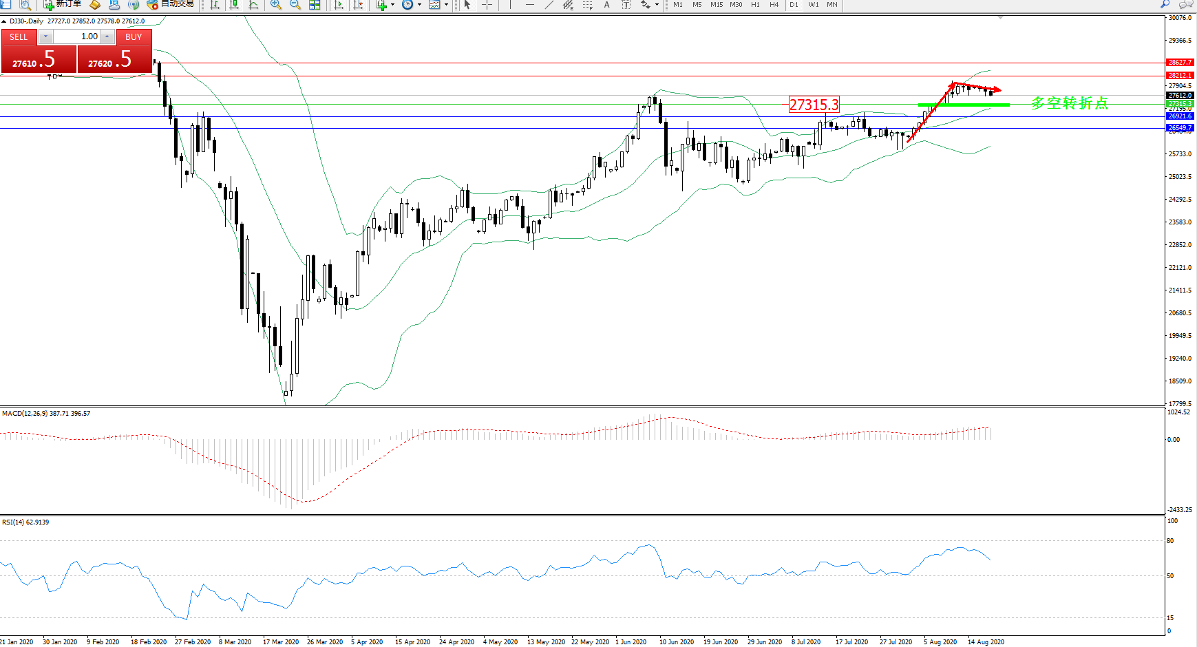 道琼斯指数8月19日(周三)收盘下跌85.20点,跌幅0.31%,报27692.88点。美联储会议纪要“引爆”市场!并继续以每月约1200亿美元的速度购买国债和抵押支持债券。美元上涨0.8%,结束了此前连续五个交易日下滑的趋势,且美国股市在美联储会议纪要发布前再创纪录高位;决策者正在考虑微调货币政策,这可能导致美联储在更长的时间内坚持激进的刺激措施;特朗普政府高级官员表示,可能会达成规模约为5,000亿美元的、规模较小的疫情救助议案,而不是之前预期的1-3万亿美元规模。
