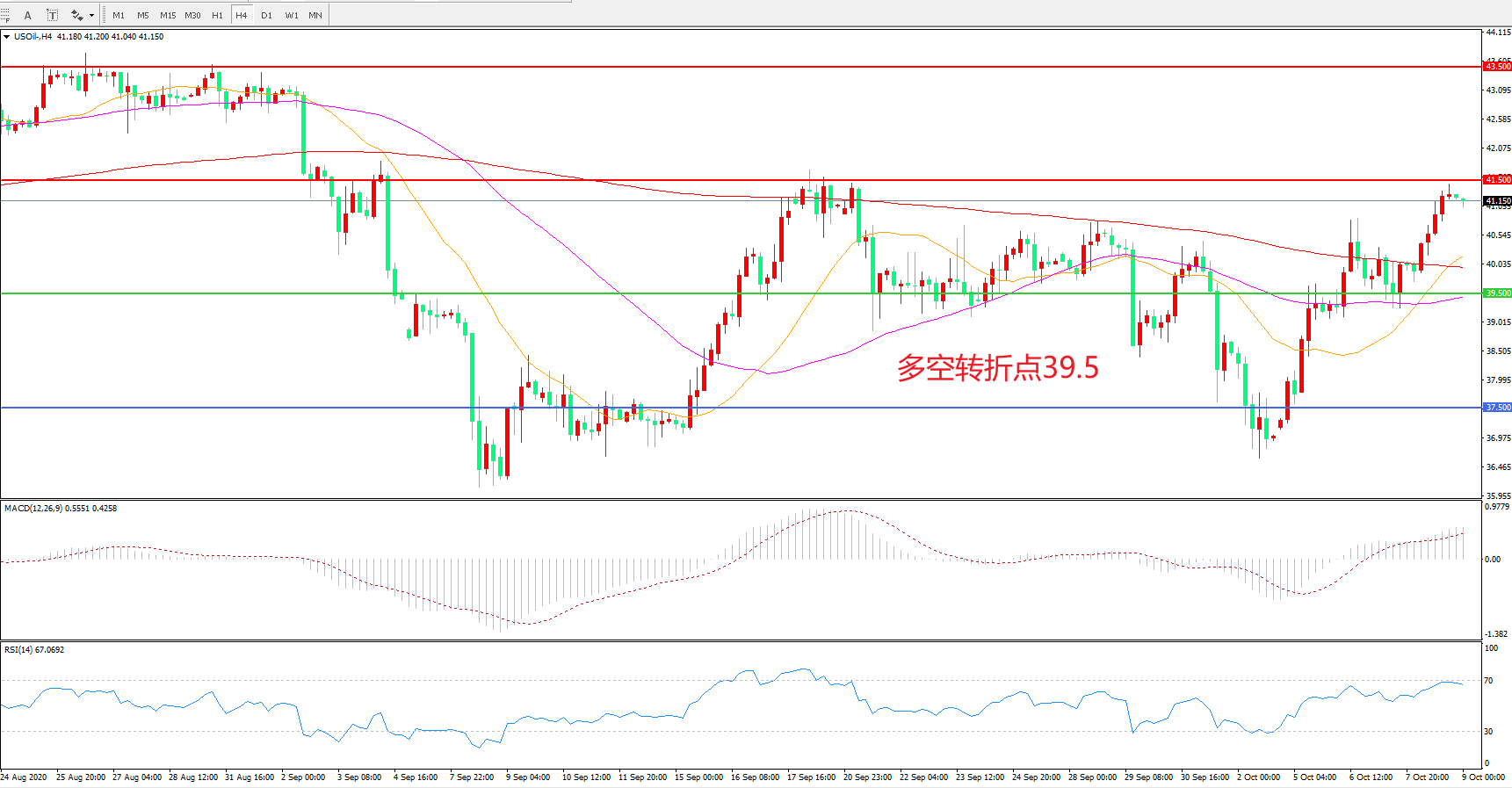 交易策略:在39.50之上看涨,目标41.50         43.50