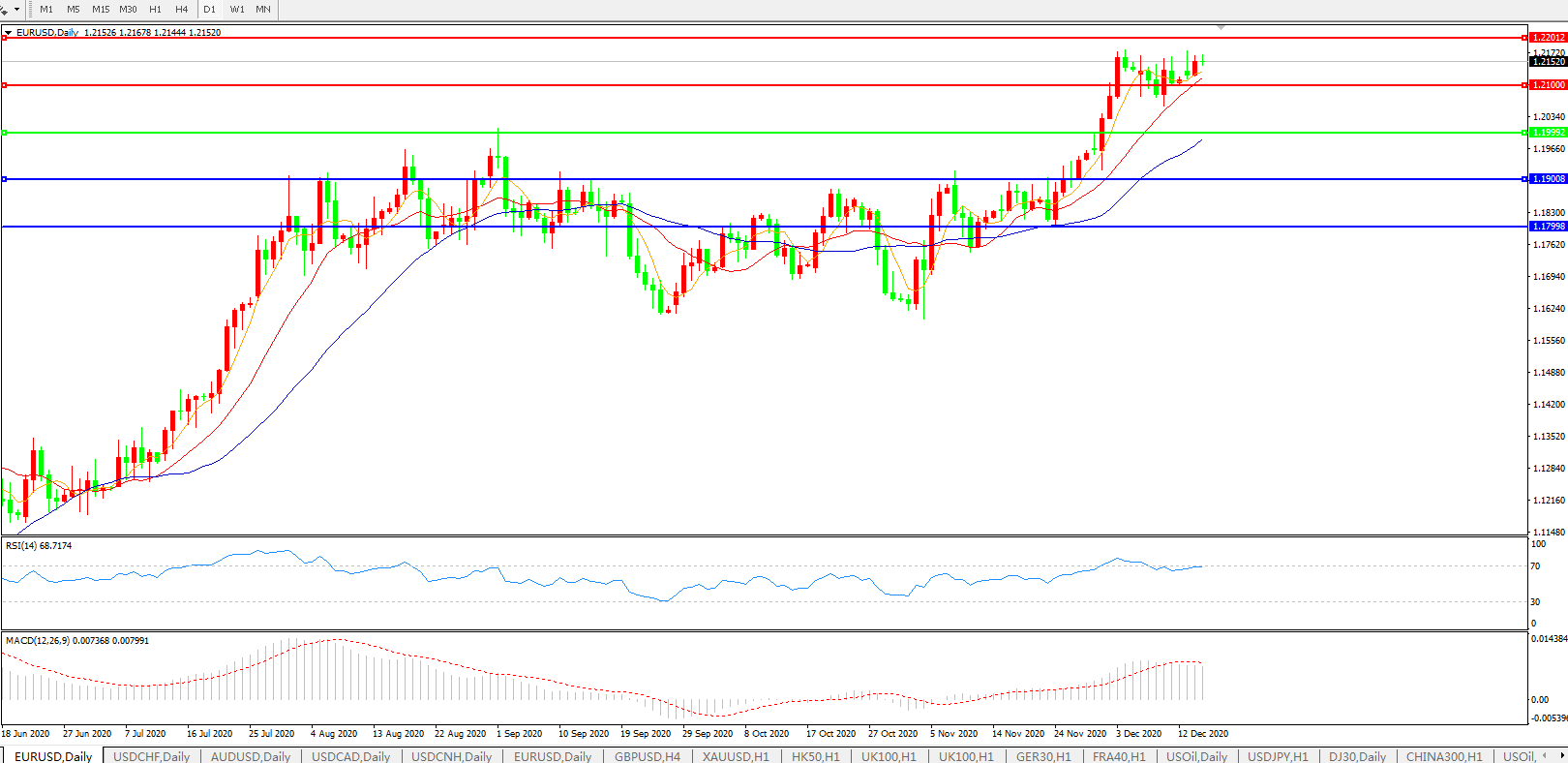 欧元兑美元周二持稳,徘徊在两年半高点附近,投资者忽视新抗疫限制措施,并关注美国出台更多刺激措施的可能性,而这可能压制美元。 欧元自11月初以来已飙升4%,至2018年4月以来的最高水平,部分原因是美元全线遭遇抛压,另外投资者押注庞大的欧洲复苏基金计划将提振该地区的经济。德国商业银行分析师Esther Reichelt表示,德国为应对疫情扩散而采取的限制措施,非但没有拖累欧元,实际上反而提高了其相对于美元的吸引力。 Esther Reichelt指出,“德国实施的严格限制及其产生的经济影响,将会在可预见的未来利好所有那些不希望看到通胀上升的欧元区国家。而这恰好支撑了欧元” 美元指周一曾低见90.419,为2018年4月以来最低,后来回升至90.72附近。周二美元依然震荡走弱,一度跌至90.57。对于美国国会可能同意1.4万亿美元支出计划的憧憬,削弱了美元。一位听取了简报的消息人士说,一项9080亿美元的两党新冠救助计划将被分成两部分 ,这让人产生了这样的希望:救助计划中很大一部分已经得到两党支持,至少这部分将获得批准。
