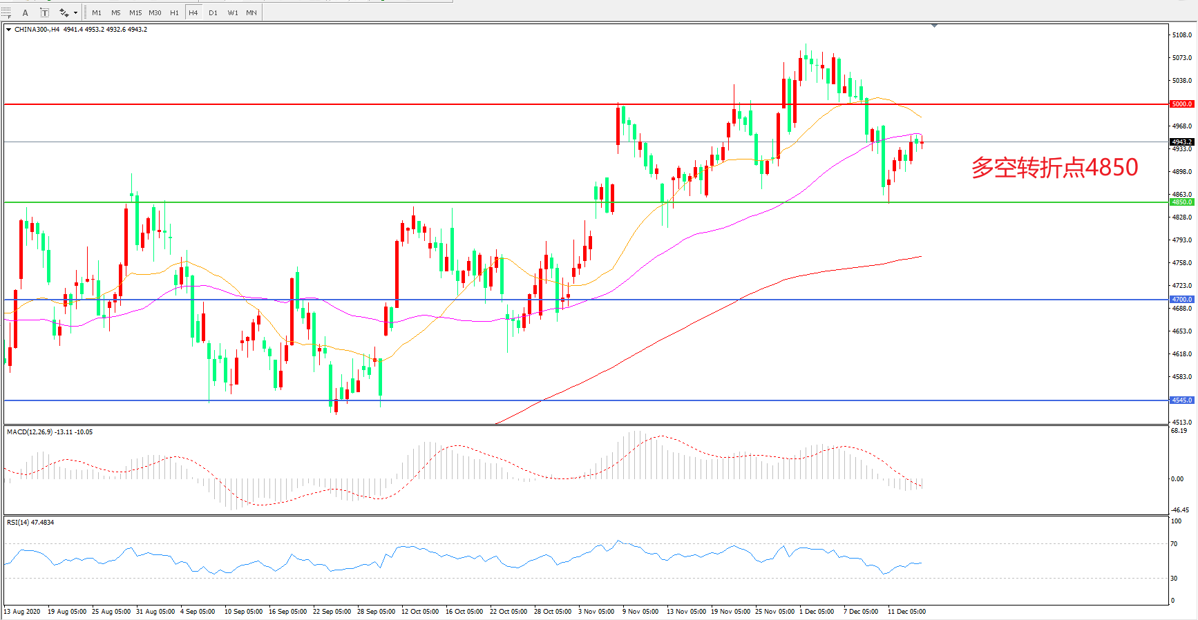 交易策略:在4850.00之上看涨,目标5000.00       5150.00