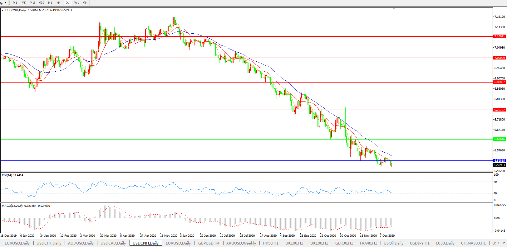 美元兑人民币USDCNH    日线图: