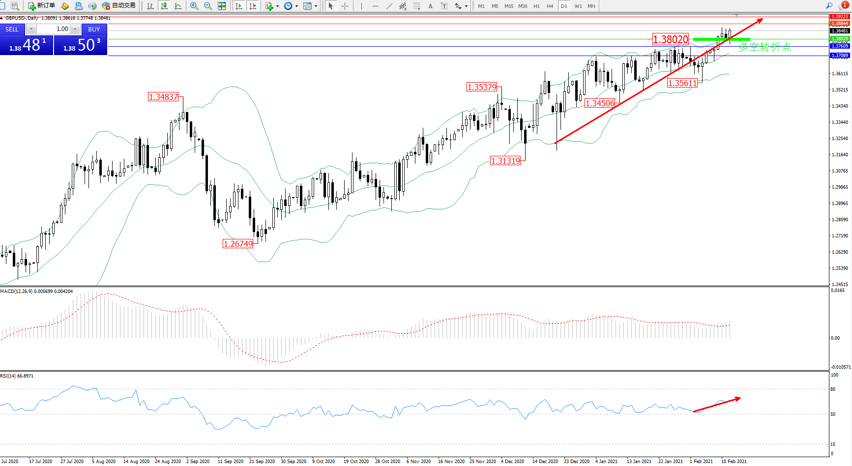 交易策略:1.38020上方看涨,目标1.38844、1.39223