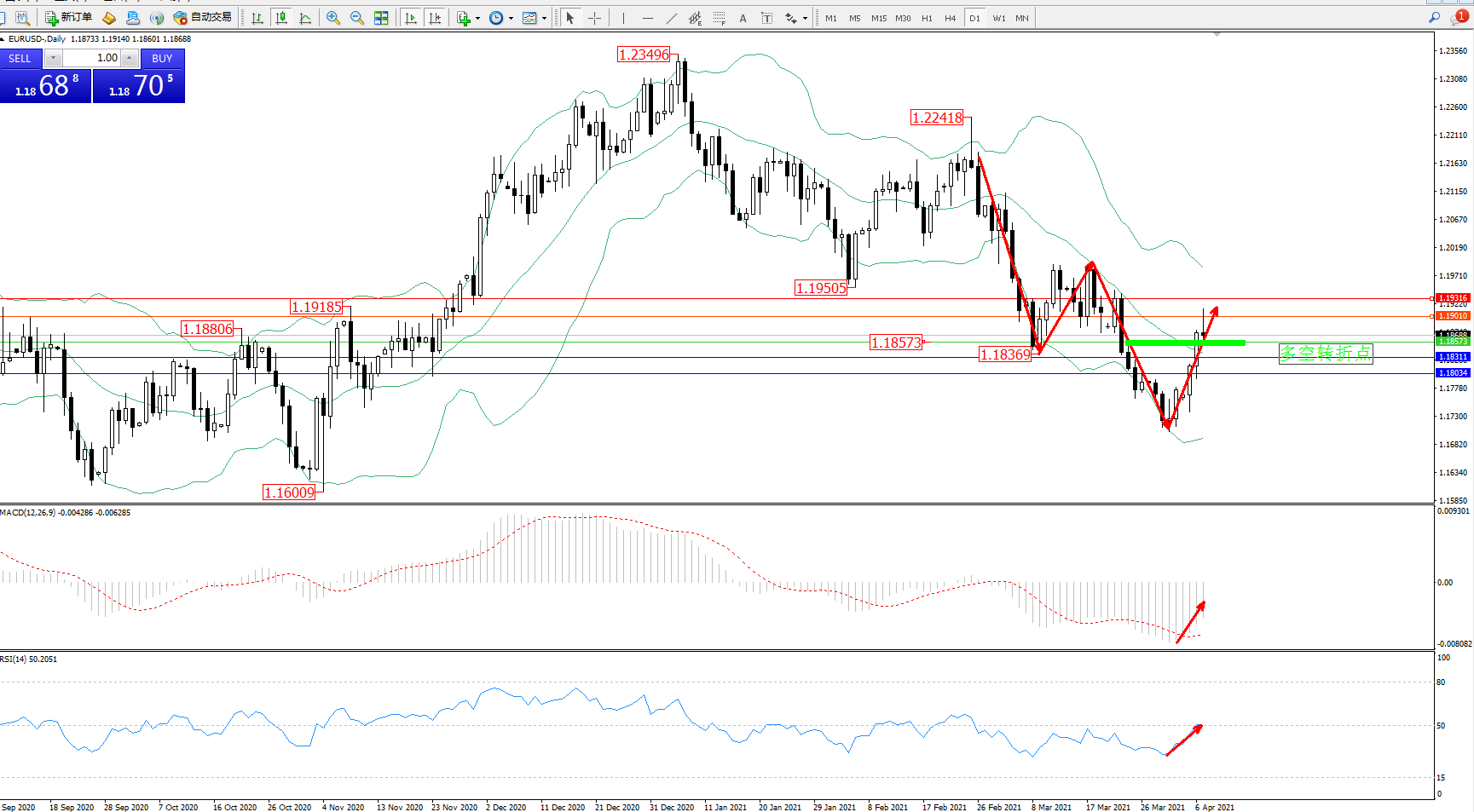 交易策略:1.18573上方看涨,目标1.19010、1.19316