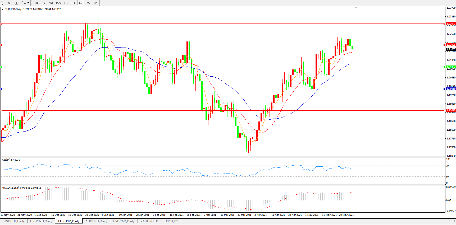 欧元兑美元EURUSD   日线图: