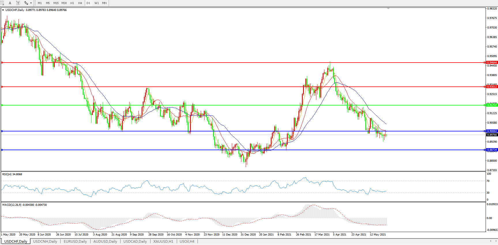 技术面简析:日线图均线发散下行,汇价低位整理徘徊,MACD运行于0轴下但量能0轴开始缩量,RSI低位有上行迹象,预计短期汇价大概率将在反弹修正后进一步下行。