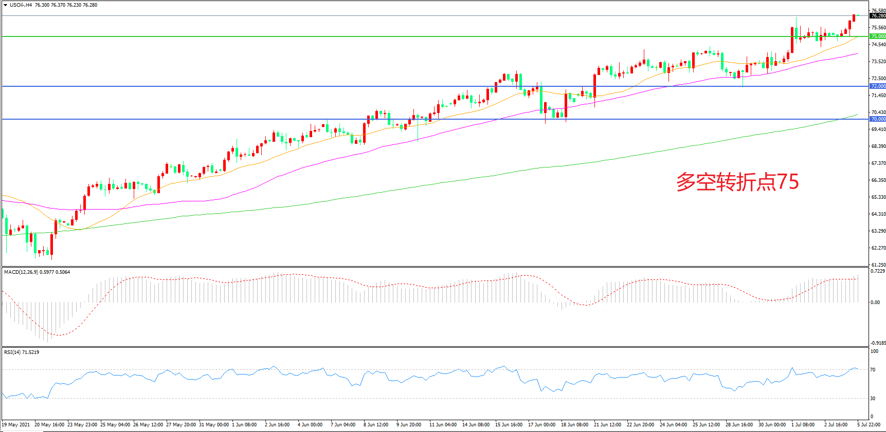 交易策略:在75.00之上看涨,目标78.00 80.00