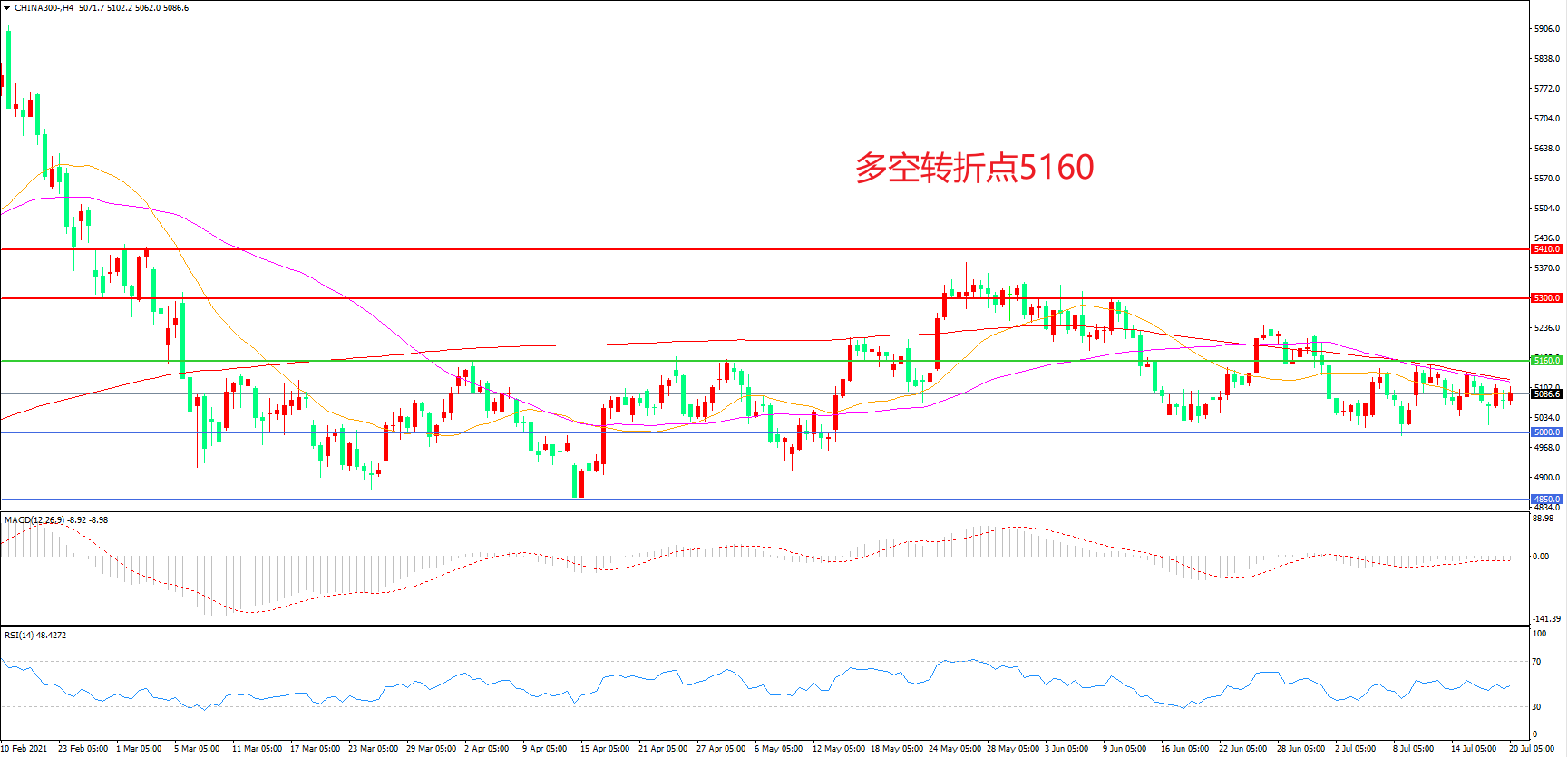 周二(7月20日),受隔夜欧美股市大跌影响,沪深两市全线低开,随后股指分化明显,沪深300延续低位震荡,收报5086.6点。两市全天成交9600余亿,较近期萎缩明显,北向资金净流入超过60亿。 目前来说,尽管国内市场也会受到海外情绪的波及,但总体影响不大,本周的重点就是下方5000点支撑的保卫战,继续弱势震荡是大概率事件。