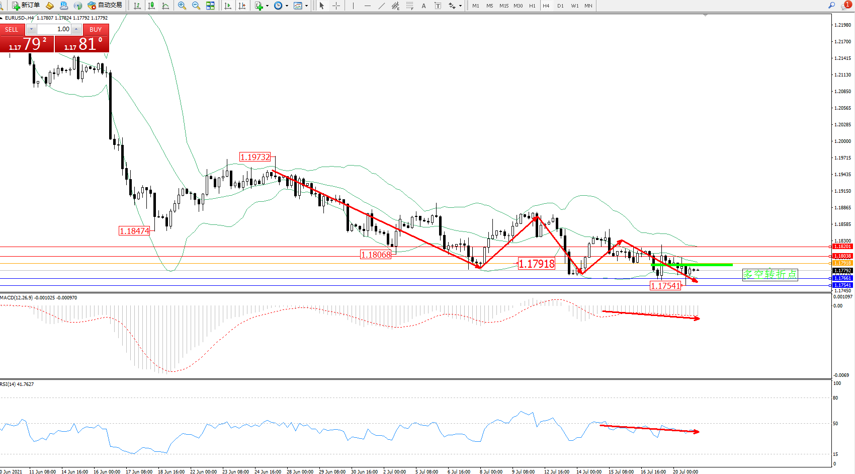 交易策略:1.17918下方看跌,目标1.17661、1.17541