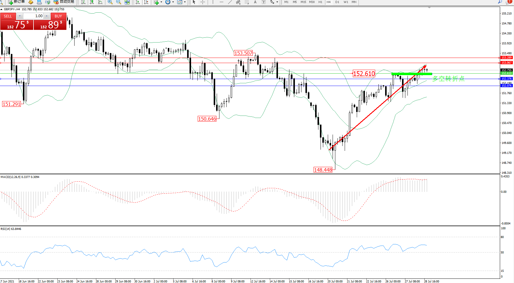 英镑兑日圆维持高位152.755附近震荡,英国首相约翰逊:正在考虑在英国和美国之间建立一条旅游走廊,允许人们“像往常一样自由地来英国”。英国今年经济将稳定复苏,尽管复苏的道路会有颠簸。如果我们保持明智和谨慎,那么经济复苏将非常强劲。