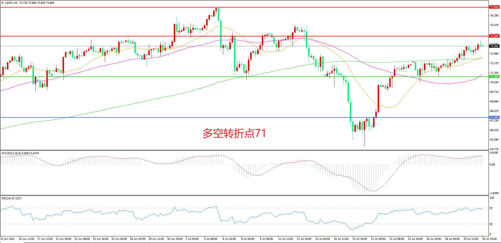 交易策略:在71.00之上看涨,目标74.50       77.00
