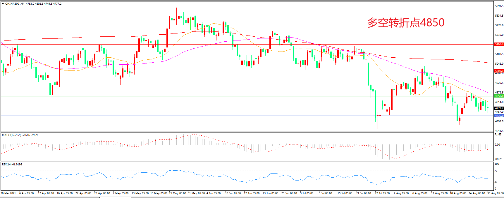 周一(8月30日),A股高开低走震荡下行,沪深300冲高回落,收报4777.2点。两市合计成交1.58万亿元,创年内新高,北向资金净流入超60亿。回顾近期市场,双减、房地产政策叠加反垄断引发对未来政策风险扩散的担忧,市场仍呈现存量博弈的状态,如果明后两天沪深300仍无法形成向上攻击走势,则后市还是会再度向下回撤。
