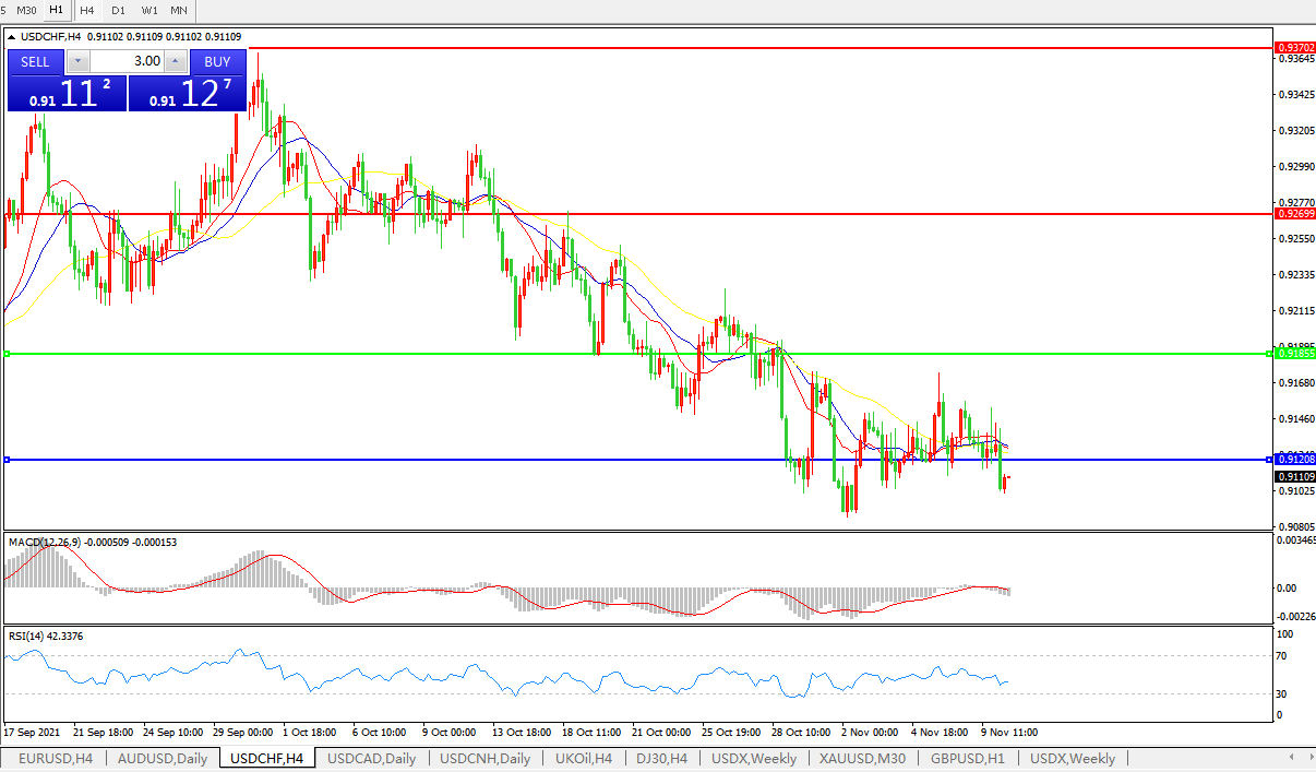 交易策略:0.9180下方看跌,目标0.9120、0.9040