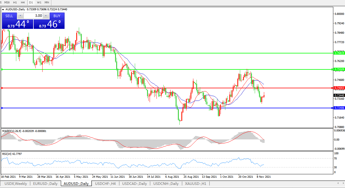 备选策略:0.7400上方看涨,目标0.7550、0.7680