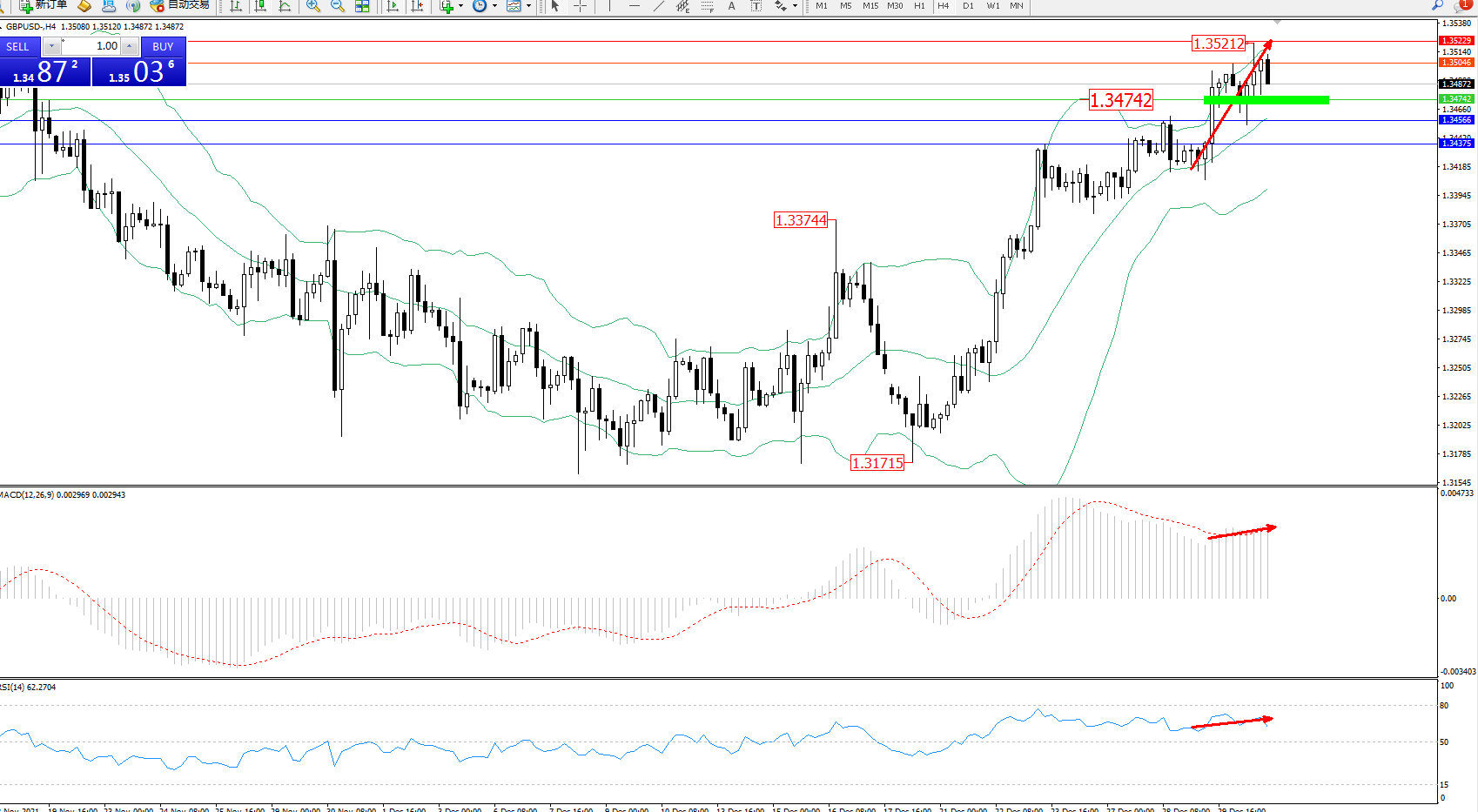 交易策略:1.34742上方看涨,目标1.35046、1.35229