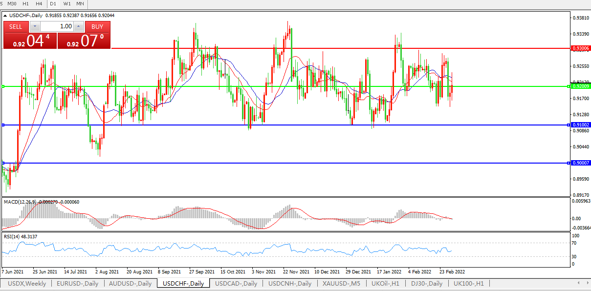 交易策略:0.9200下方看跌,目标0.9100、0.9000