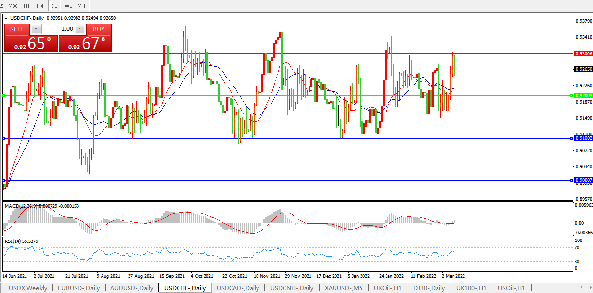 交易策略:0.9200上方看涨,目标0.9300、0.9400