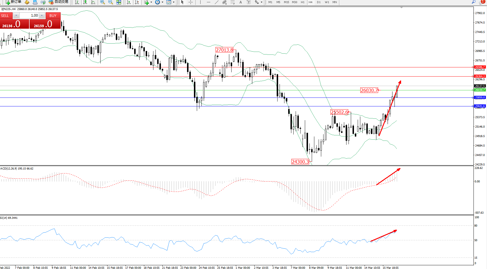 交易策略:26030上方看涨,目标26364、26586