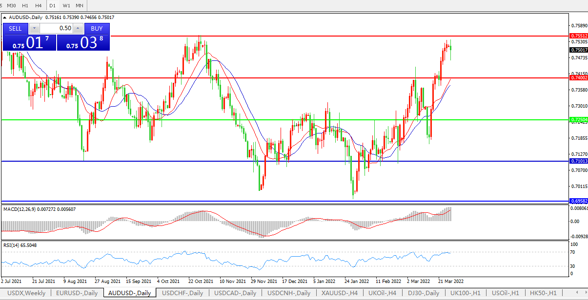 澳元兑美元跌0.32%,报0.7490美元,但距离近期的四个月高点不远;纽元兑美元跌0.89%至0.6893。