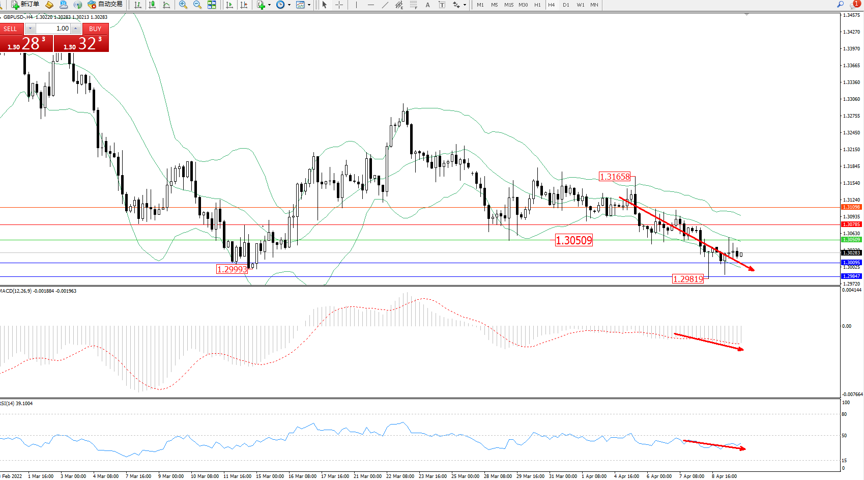交易策略:1.30509下方看跌,目标1.30095、1.29847