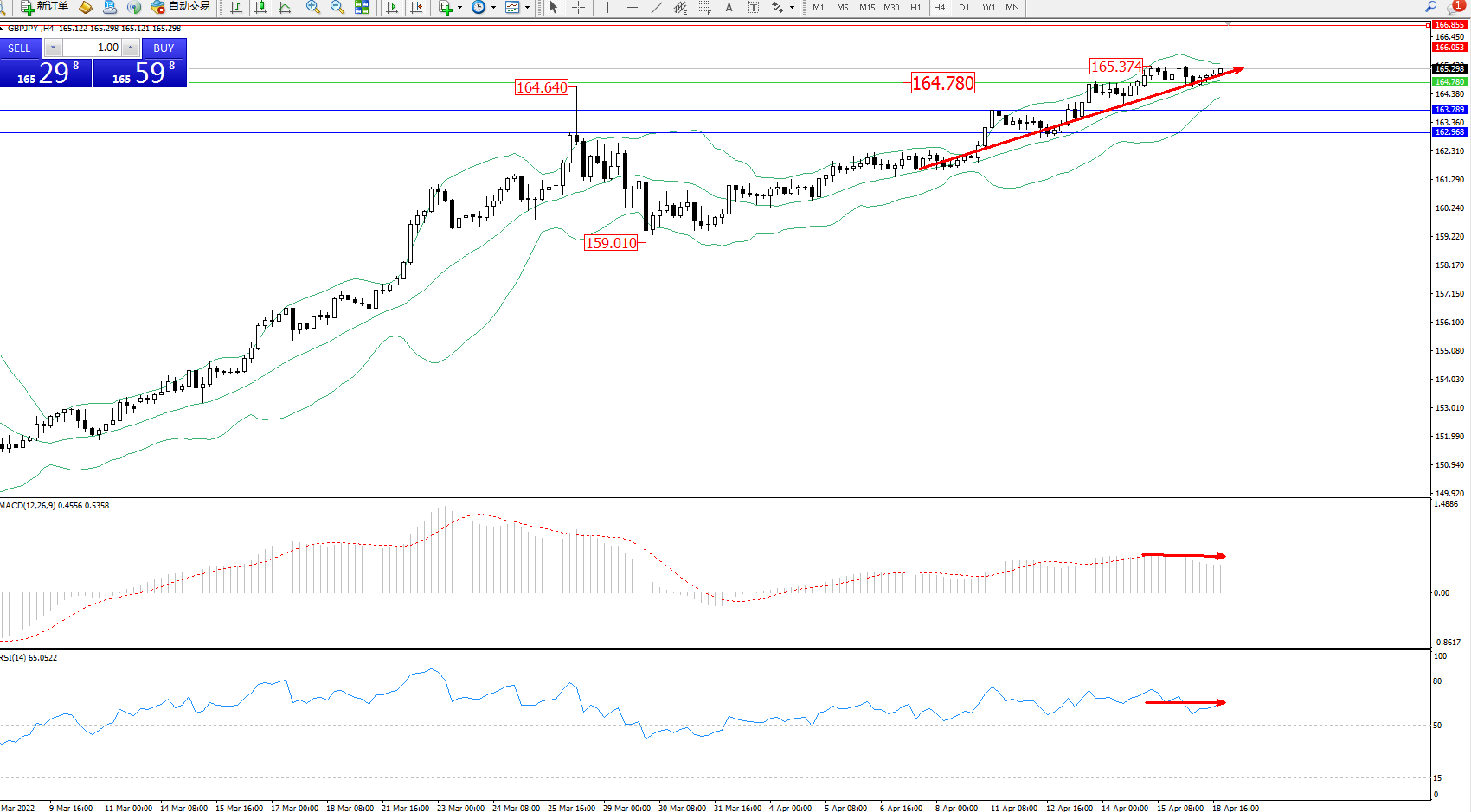 技术点评:多头动力延续布林带指标通道中上轨区间持续震荡上扬,高位抵达165.374位置后开始整理不断向上移动,短期多头动力有继续向上拉升态势,布林带指标呈上行趋势走势后高位开始缓慢收口,MACD指标处于多头区域维持整理平移,RSI指标处于多头区域窄幅弱势徘徊中;