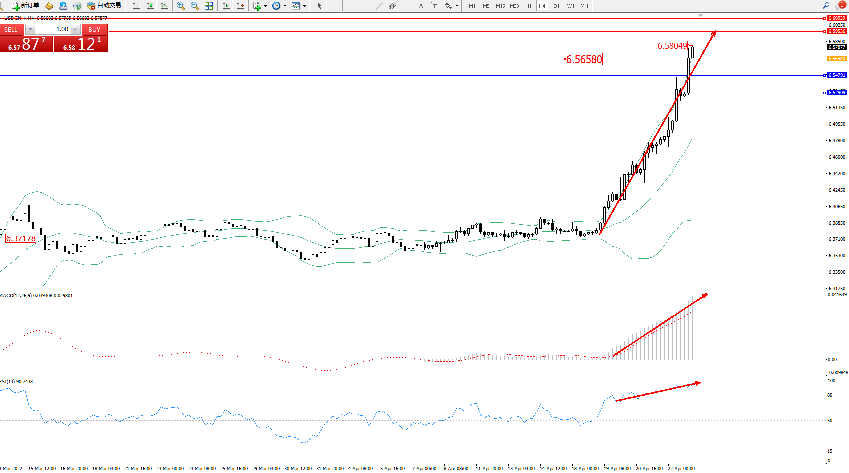 技术点评:多头动力延续布林带指标上轨附近强势拉升上扬,高位抵达6.58049附近整理,短期多头动力有继续攀升态势,布林带指标呈张口走势后持续中,MACD指标处于多头区域不断攀升,RSI指标处于超买区80均衡线上方不断上移;
