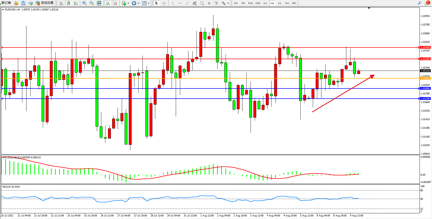欧元兑美元维持1.02116附近震荡, 欧元区经济下行压力仍很大,表现在消费意愿低迷、通胀高企、能源价格居高不下,都导致投资者信心未出现明显改善。