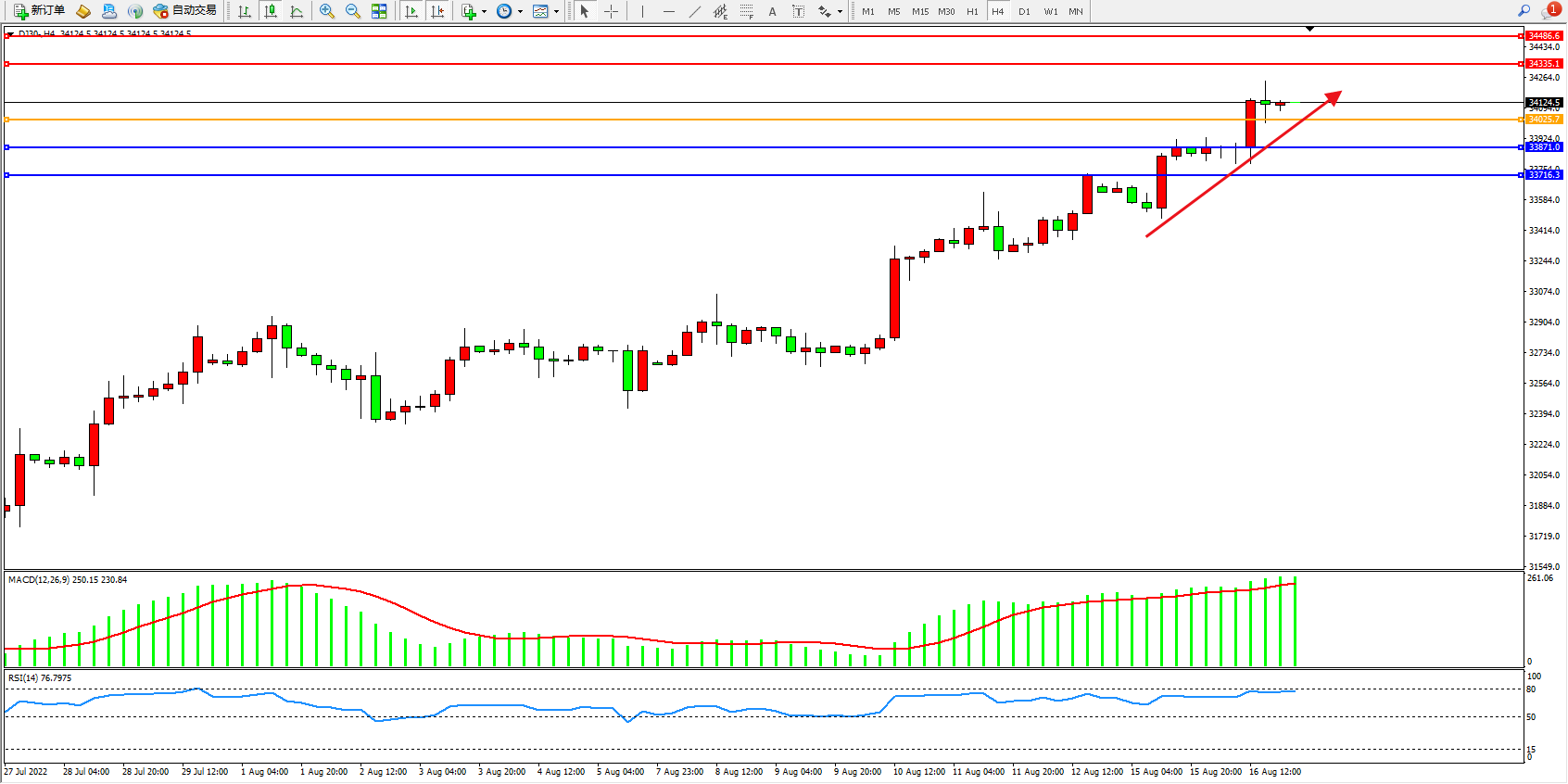 道琼斯指数8月16日(周二)收盘上涨239.24点,涨幅0.71%,报34151.68点;美国总统乔·拜登签署了总价值为7500亿美元的《2022年通胀削减法案》,令该立法正式生效。