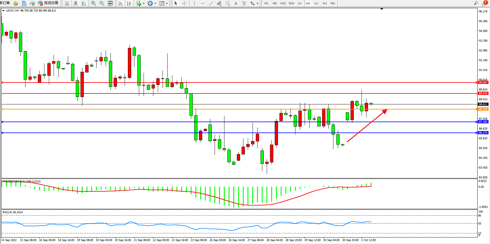 布油维持88.611附近震荡,国际能源署发布天然气市场季度报告,警告欧洲在今年冬天将面临“史无前例”的天然气短缺风险,同时建议以节省用气应对。