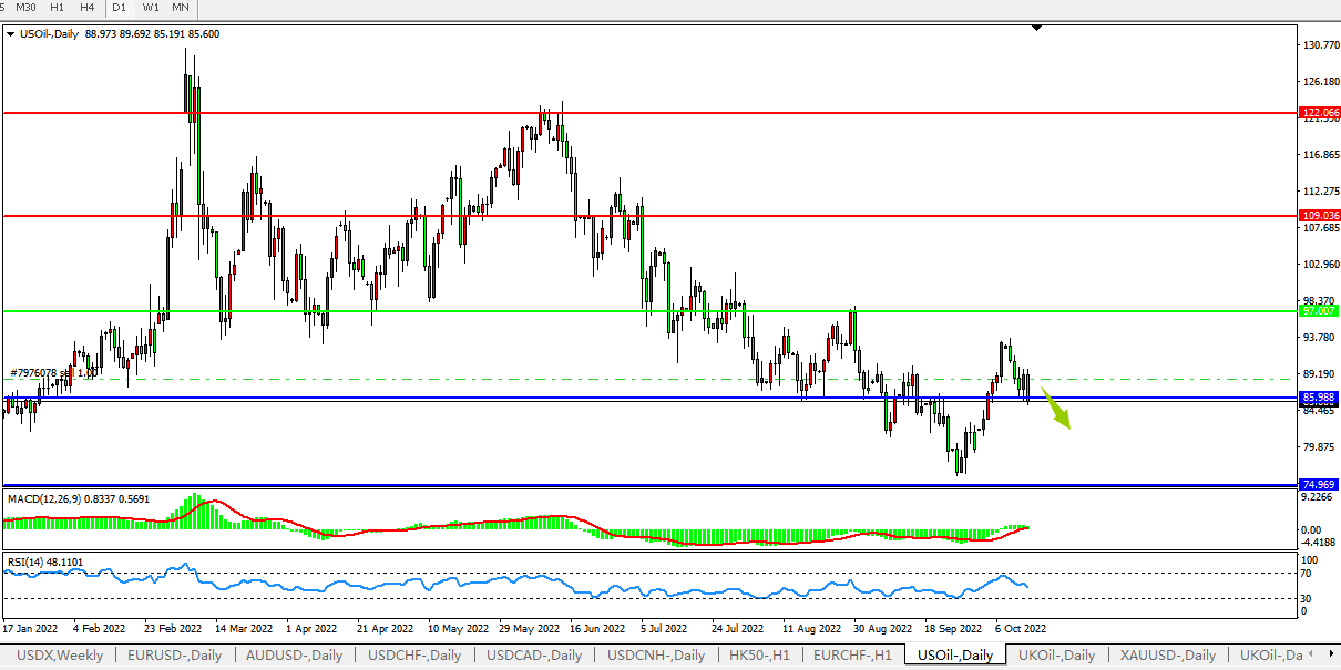 日线图看:油价继续小幅下行回踩, MACD量能柱0轴上方开始缩量,RSI指标快速走强,短期油价继续回踩寻底概率增大。