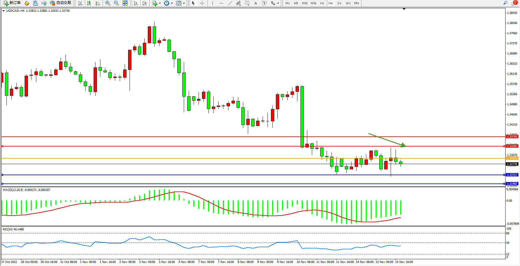 4小时图看:低位维持窄幅整理平移,市场空头情绪开始有减弱迹象,MACD指标处于空头区域低位整理上移,RSI指标处于50均衡线下侧弱势徘徊;