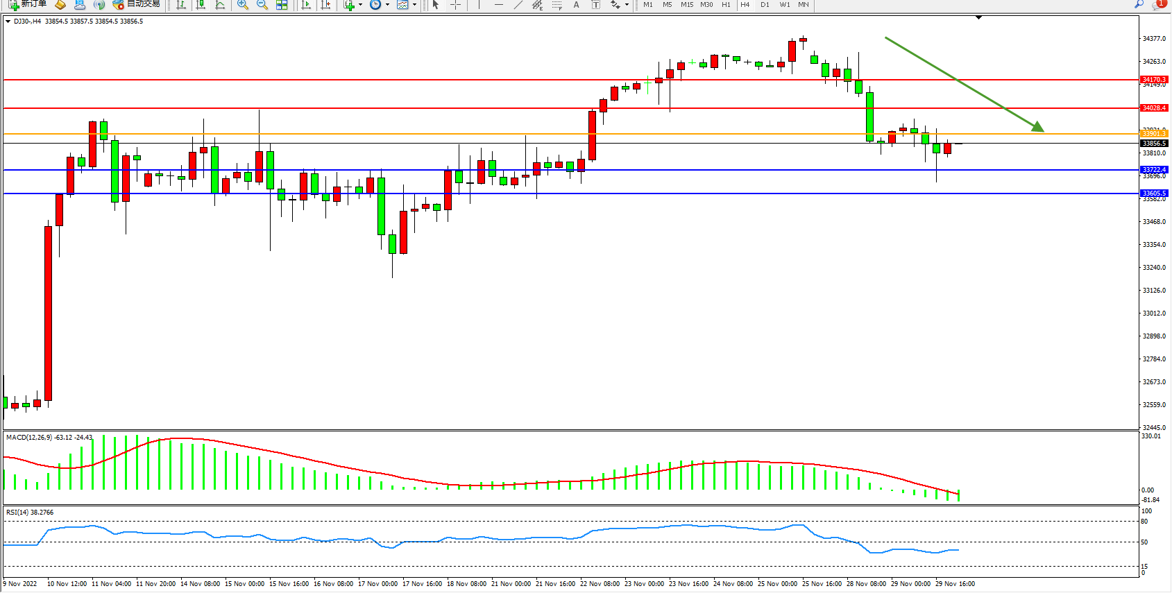道琼斯指数11月29日(周二)收盘上涨1.02点,涨幅0.00%,报33850.48点;市场预计,美联储12月会议将下调加息幅度至50个基点。美联储政策利率已处于限制性区域,稍微谨慎一点是有帮助的,慢速加息是一种更好的风险管理方法。