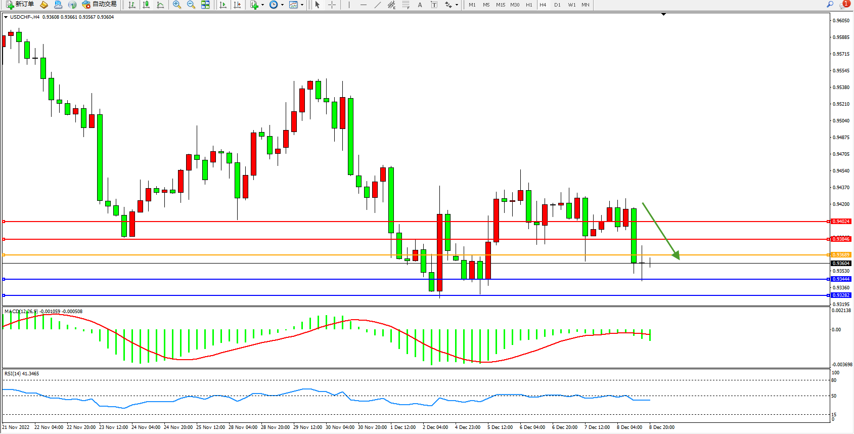 交易策略:0.93689下方看跌,目标0.93444、0.93282