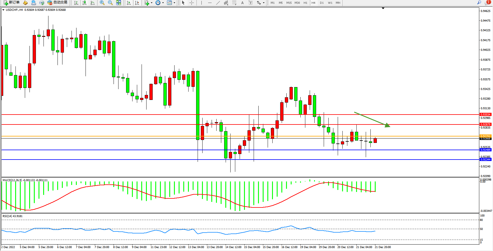 交易策略:0.92702下方看跌,目标0.92489、0.92344