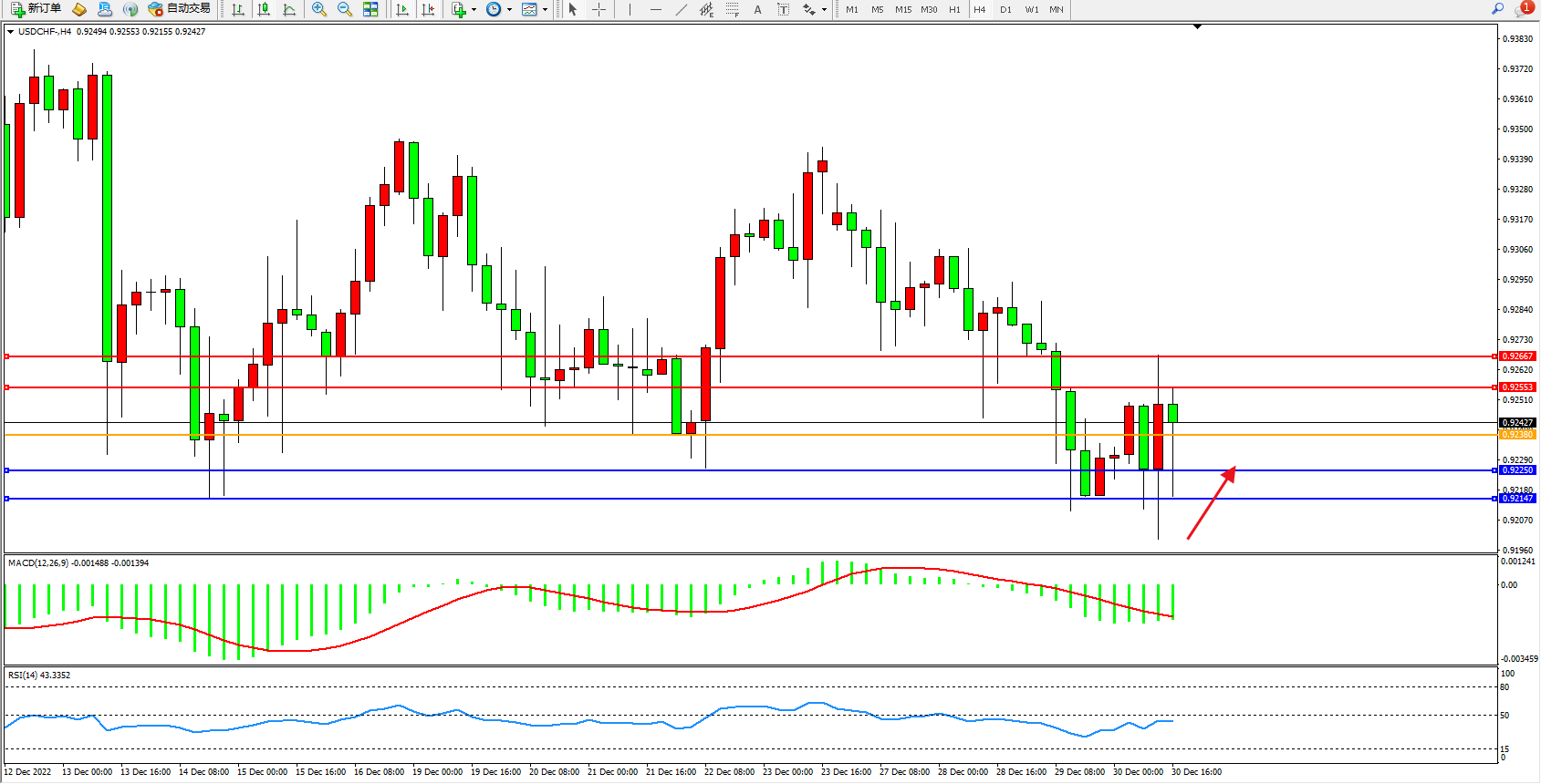 交易策略:0.92380上方看涨,目标0.92553、0.92667