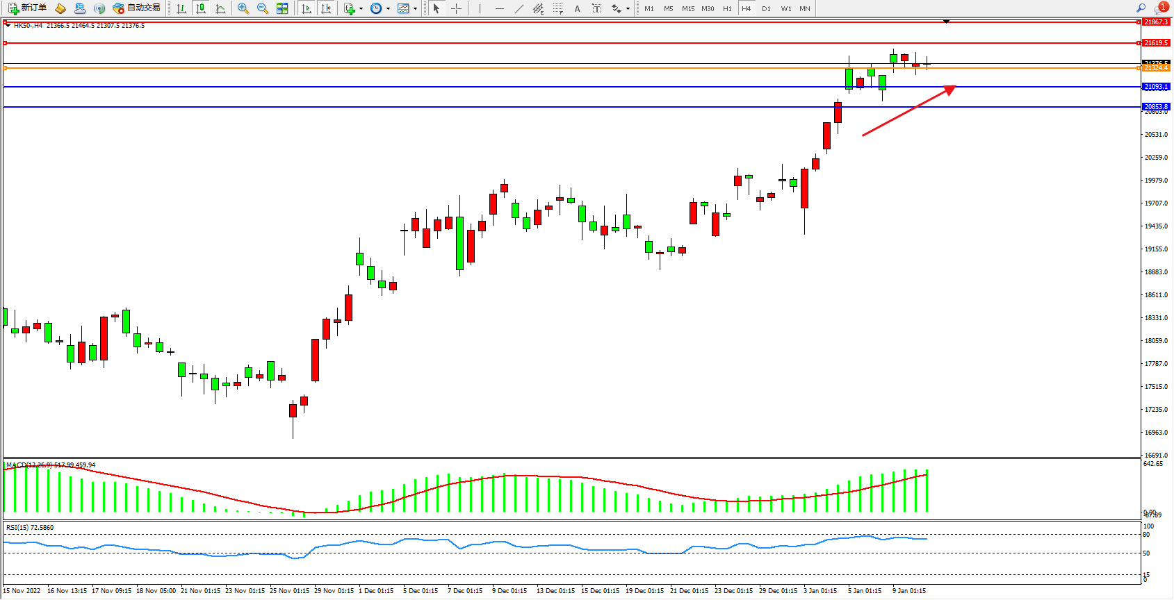 4小时图看:多头动力持续震荡上扬后,高位窄幅整理,市场看涨动力开始有所减弱,但依旧处于高位徘徊中,MACD指标处于多头区域高位整理,RSI指标处于多头区域高位徘徊;