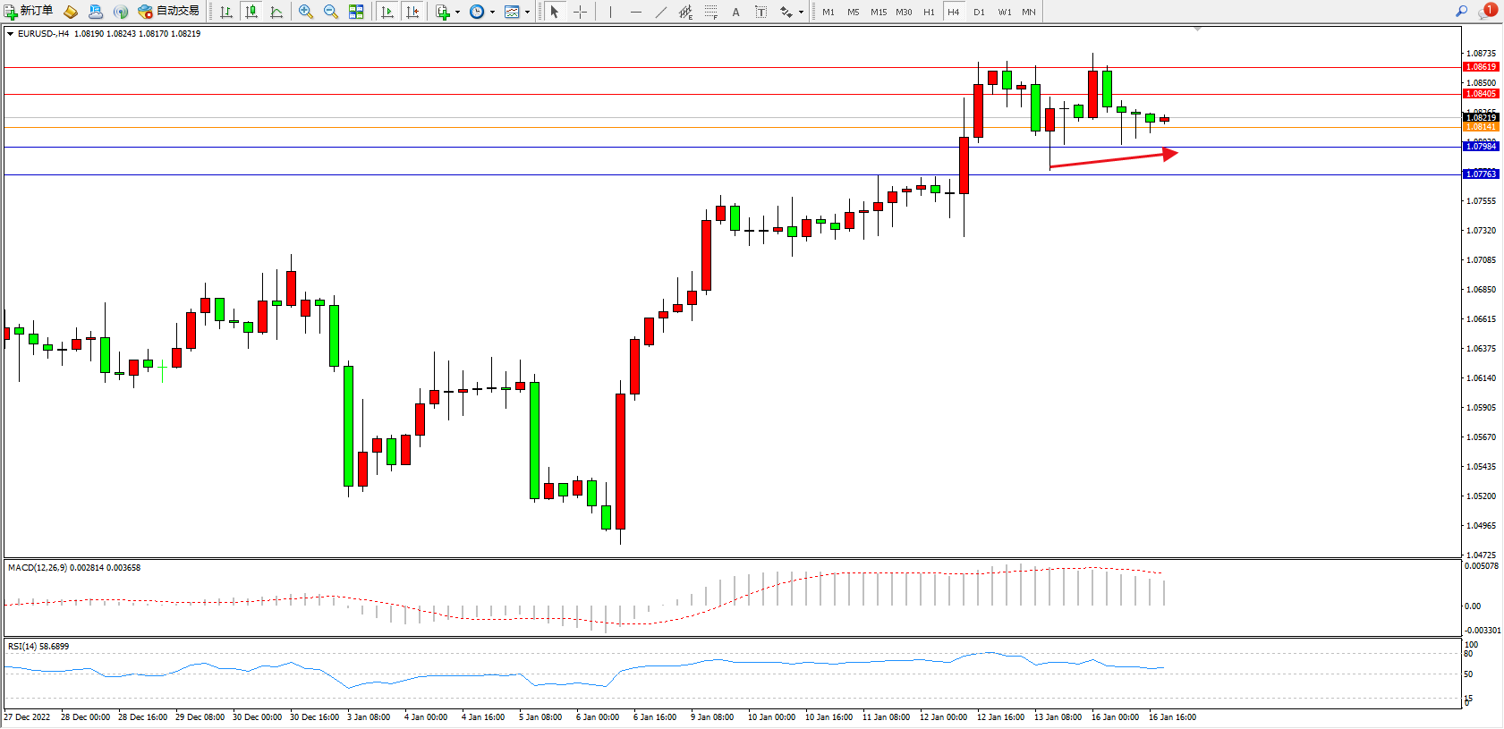 交易策略:1.08141上方看涨,目标1.08405、1.08619