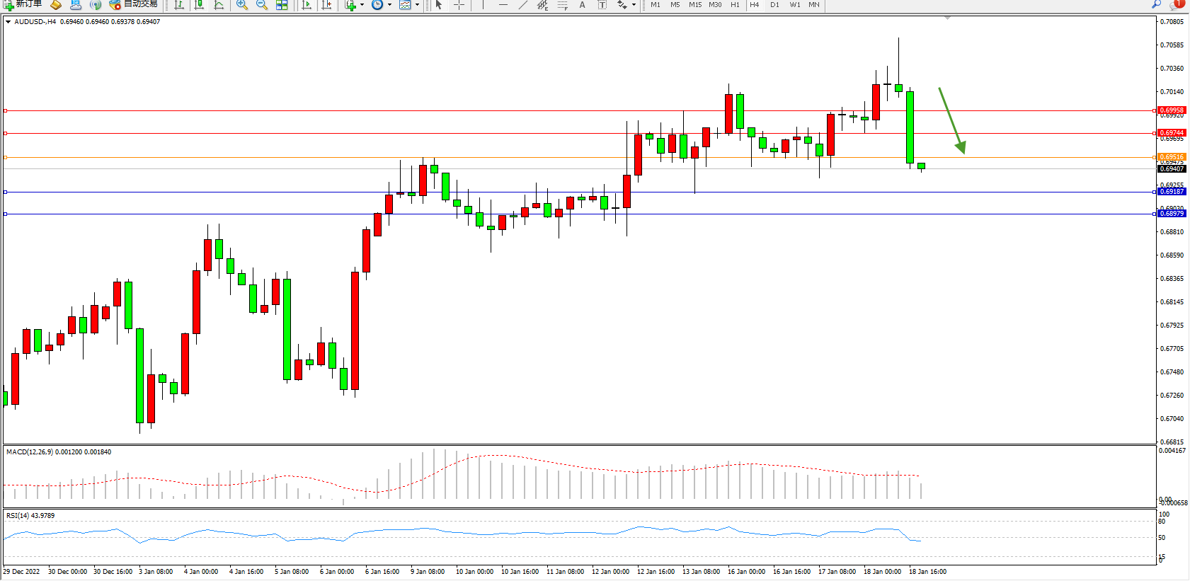 交易策略:0.69516下方看跌,目标0.69187、0.68979