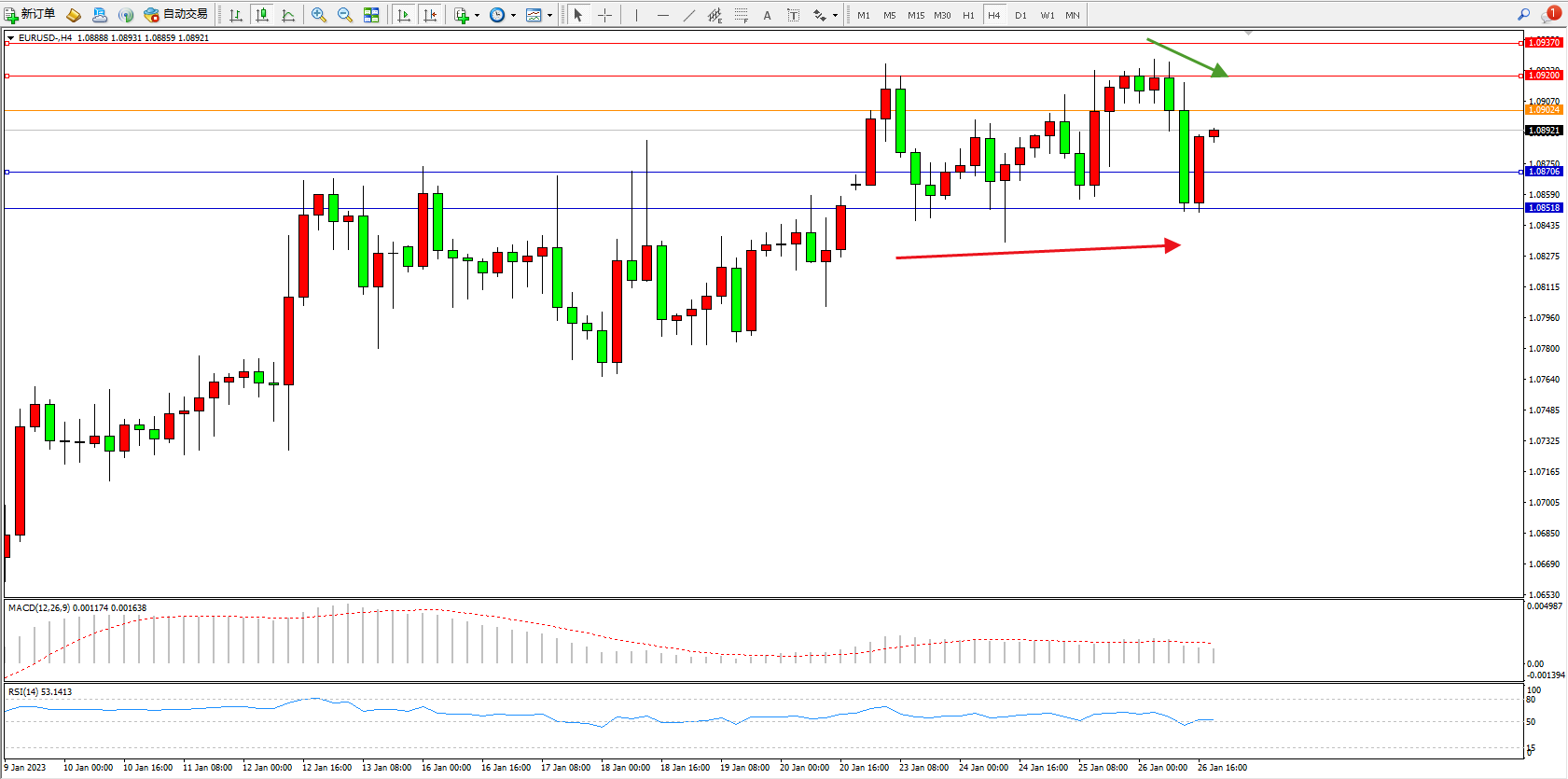 交易策略:1.09024下方看跌,目标1.08706、1.08518