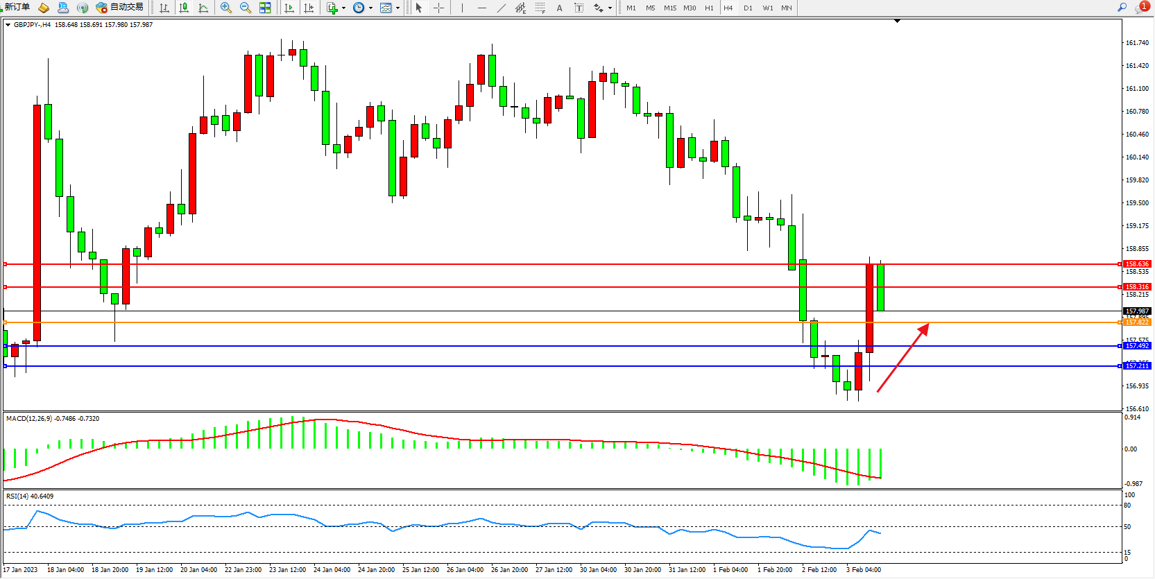 4小时图看:低位多头动力反转拉升上扬,短期多头情绪笼罩,市场多头不断攀升,MACD指标处于空头区域整理上移,RSI指标处于空头区域震荡上移至50均衡线下侧徘徊;