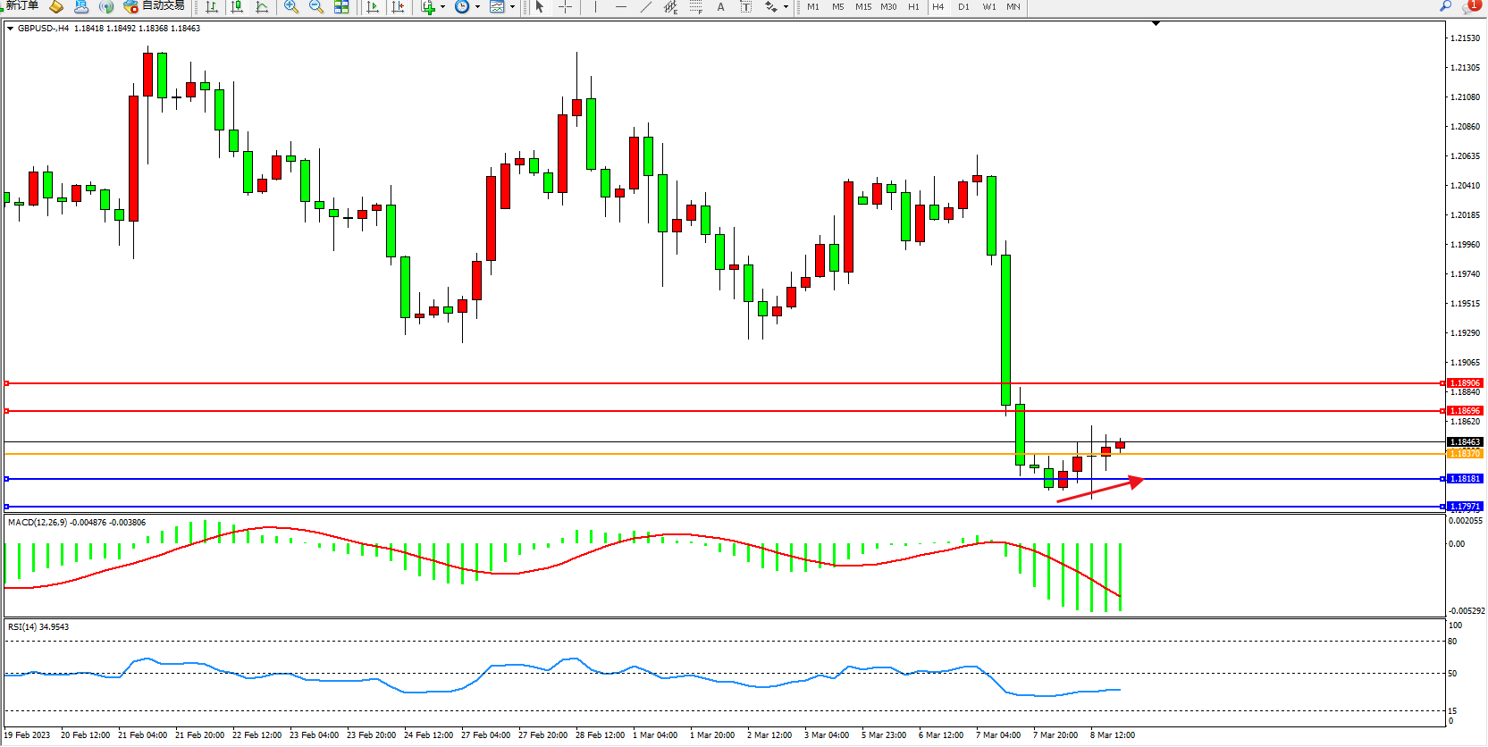 交易策略:1.18370上方看涨,目标1.18696 1.18906