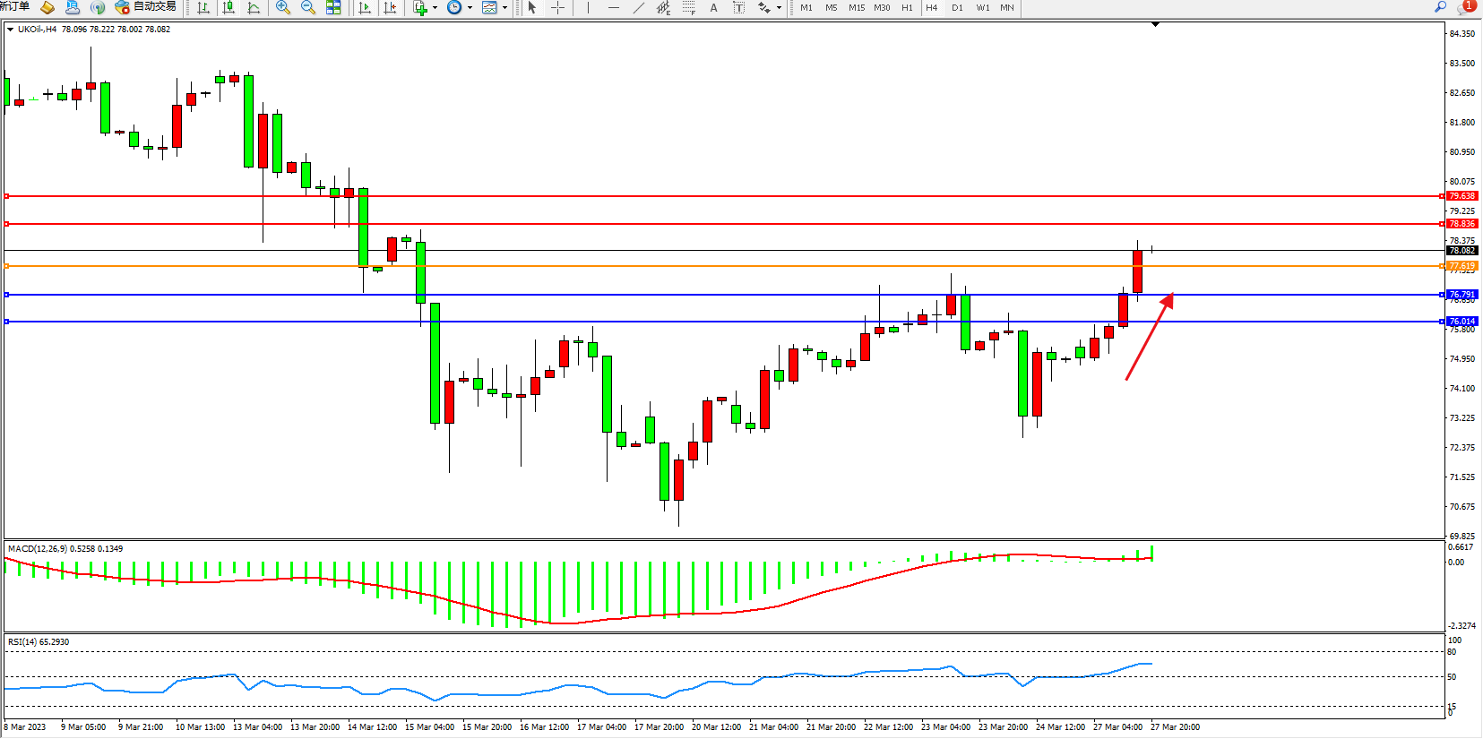布油维持78.082附近震荡,国际油价企稳,俄罗斯总统普京上周末发表的言论加剧了欧洲的地缘政治紧张局势。但投资者正在从更广泛的金融市场表现寻求线索。在银行业危机完全消散之前,油价可能不会出现强劲反弹。