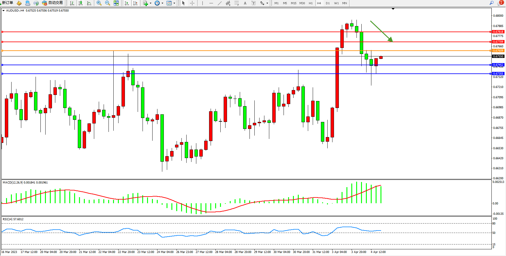 备选策略:0.67609上方看涨,目标0.67709 0.67818